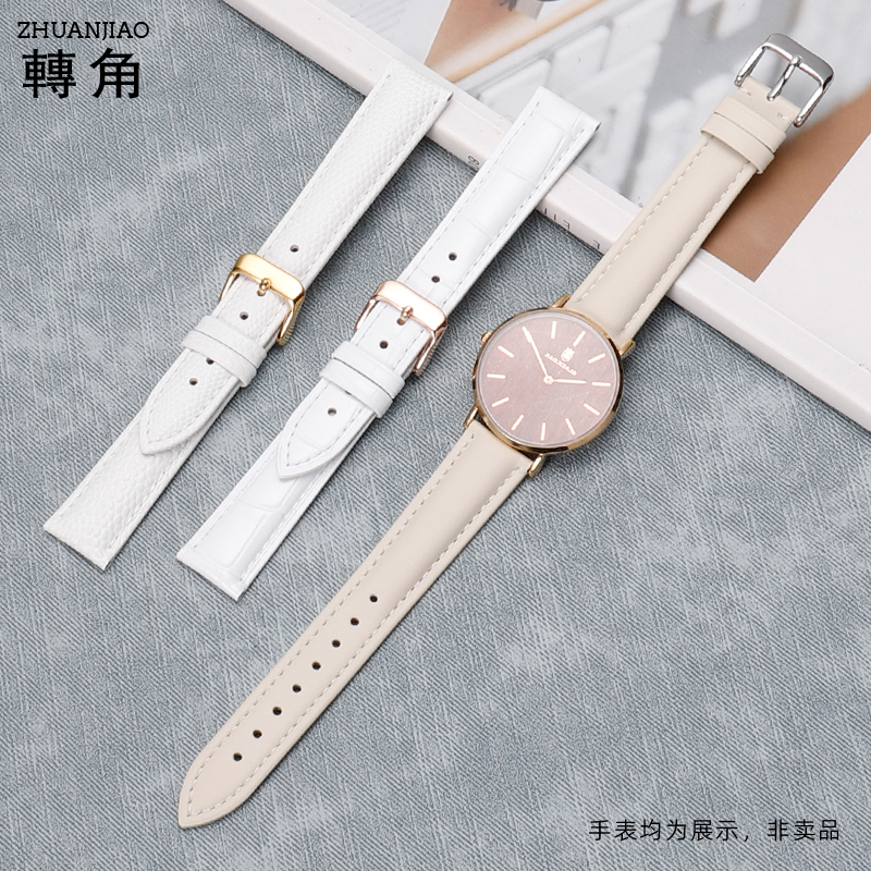 白色表带真皮女适配飞亚达天梭DW铁达时罗西尼卡西欧蝴蝶扣手表带