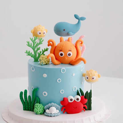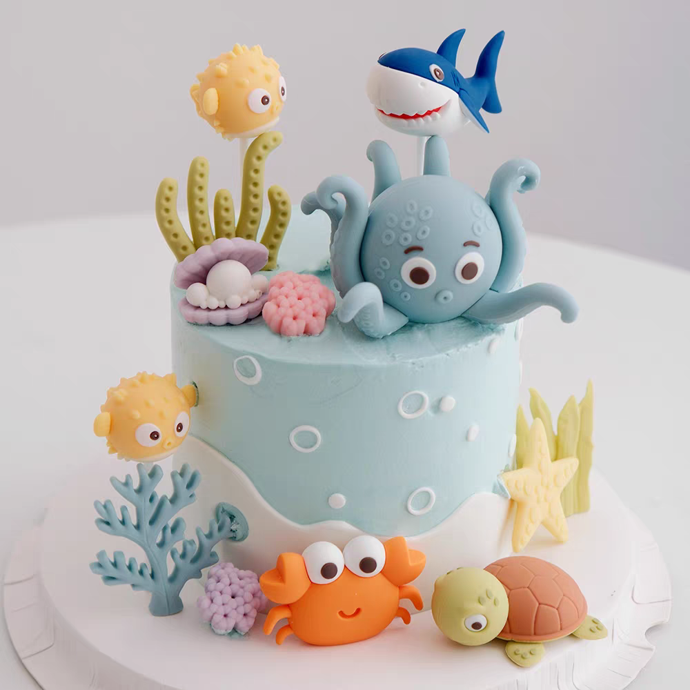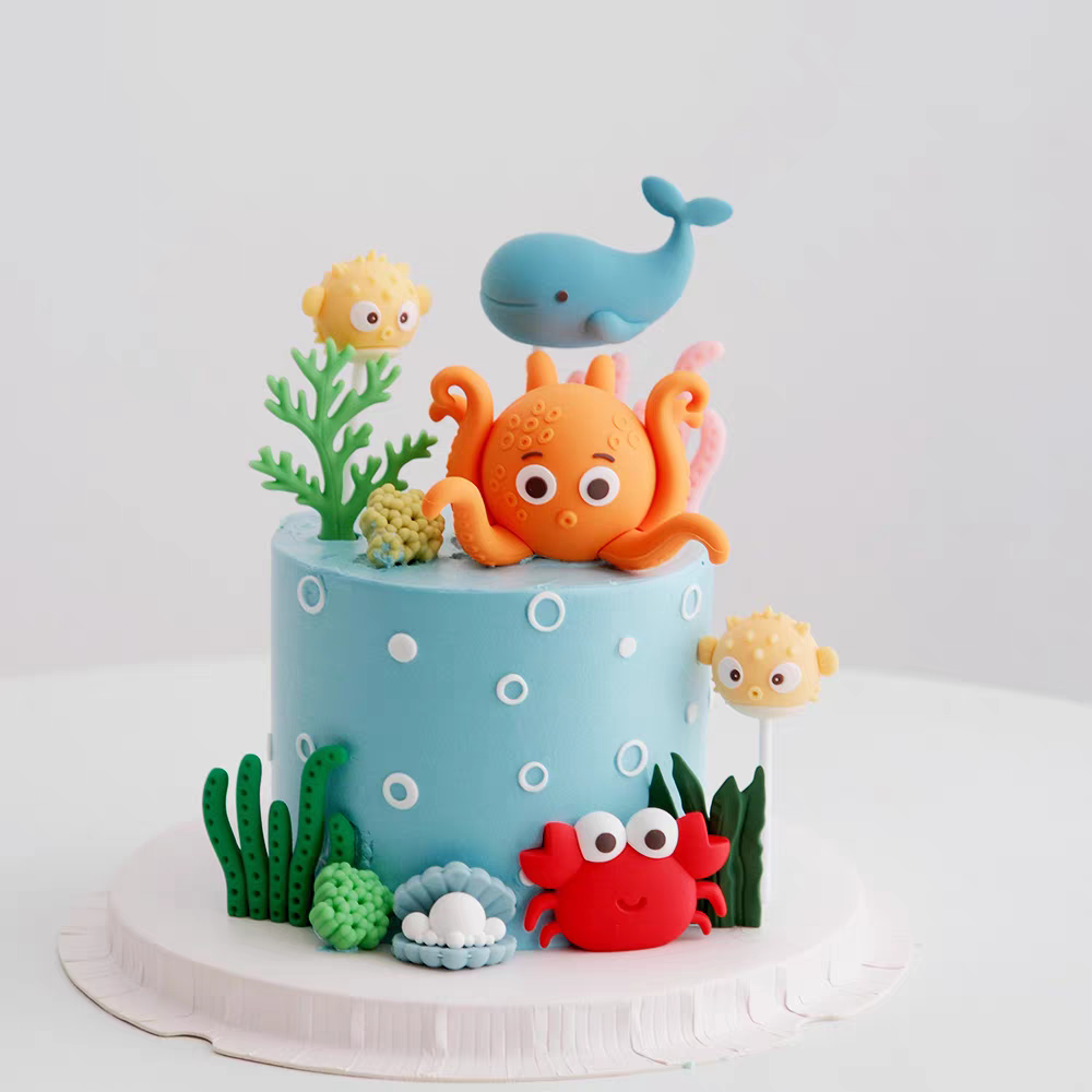 网红烘焙海洋海龟螃蟹贝壳海草海星插件生日蛋糕装饰摆件鲸鱼章鱼