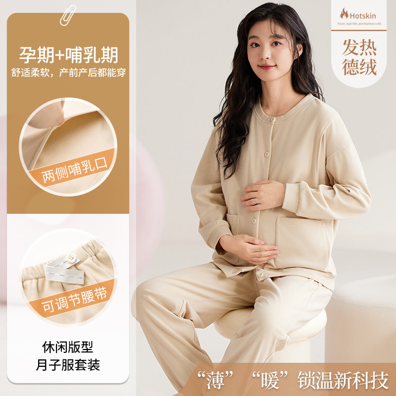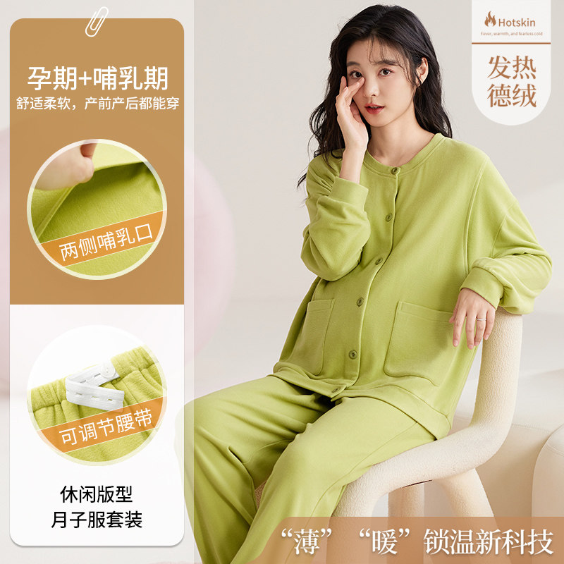 德绒开衫月子服11 12月份秋冬季孕妇哺乳睡衣产后喂奶春秋家居服