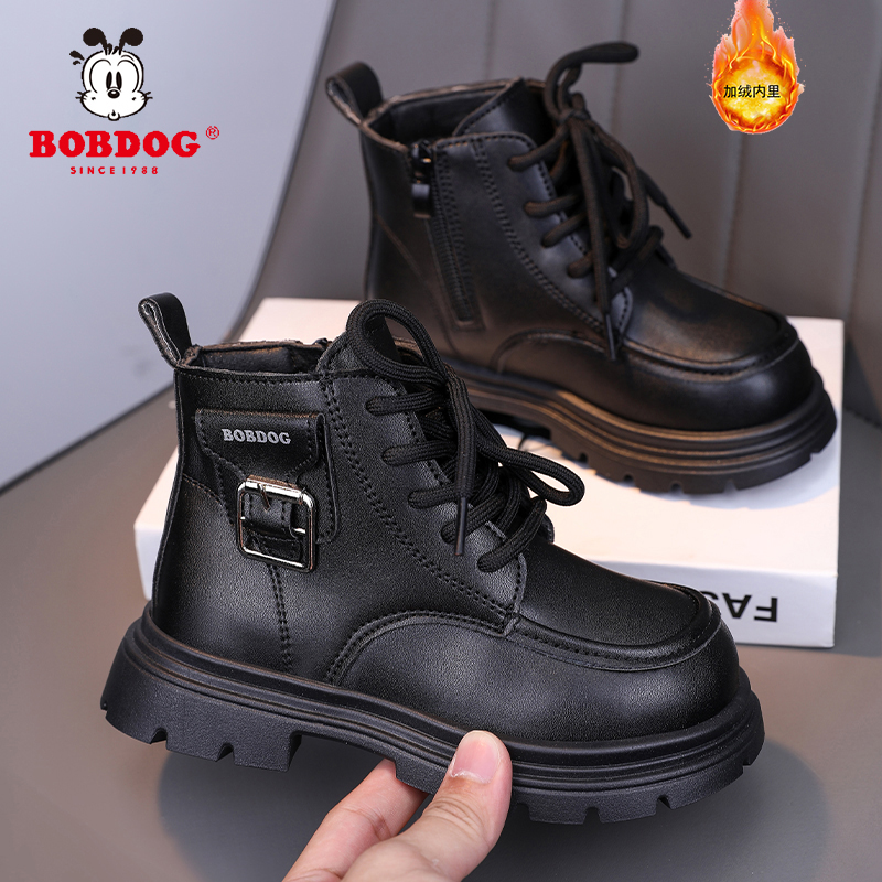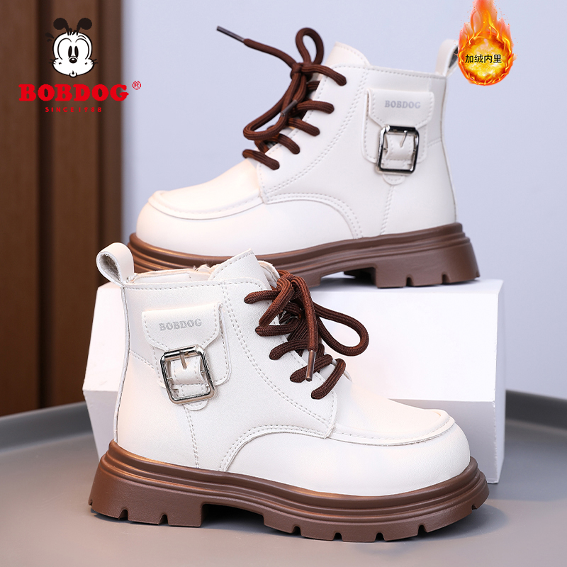 巴布豆童鞋女童马丁靴2025冬季新款加绒保暖儿童棉鞋女孩公主短靴