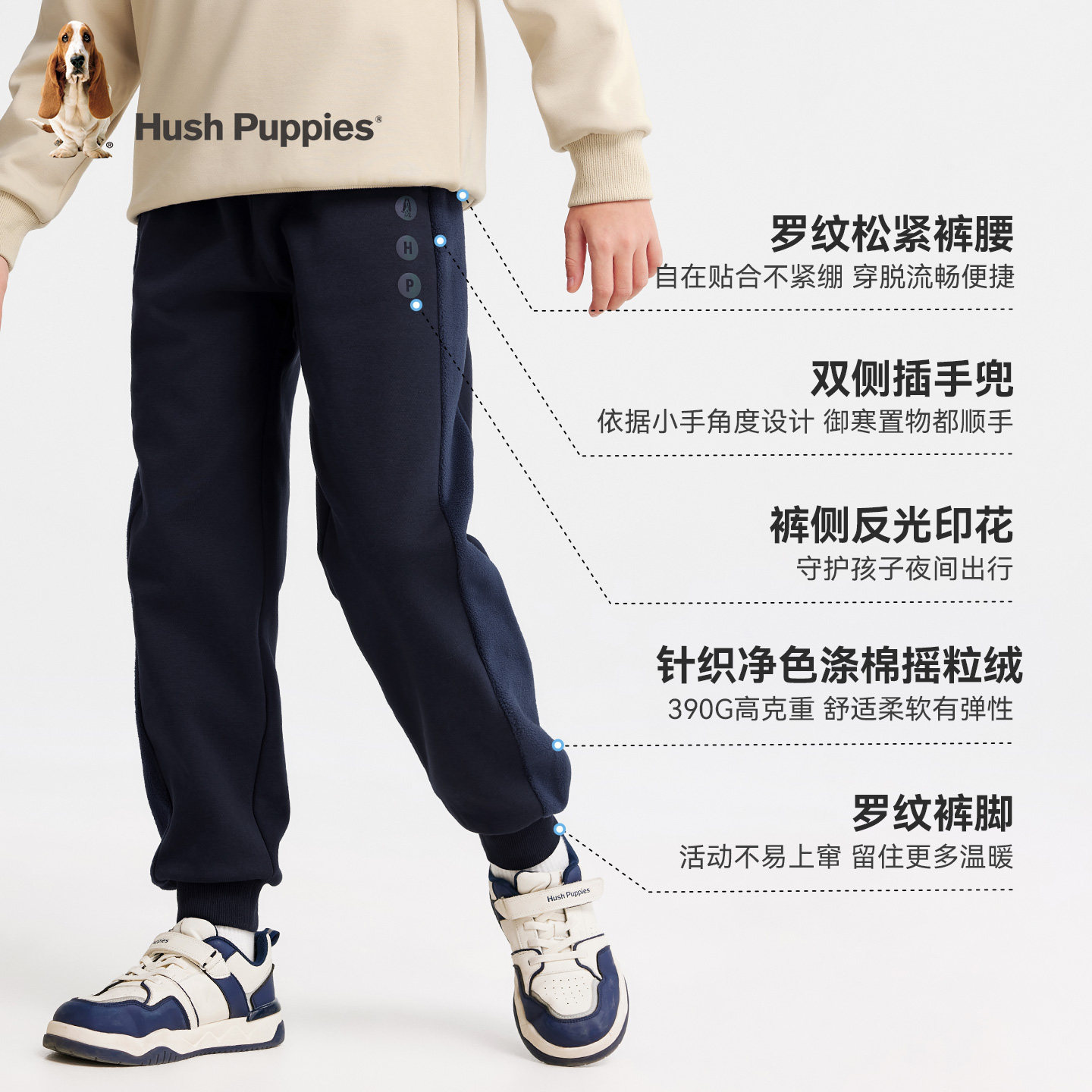 暇步士男童加绒长裤大童休闲裤子
