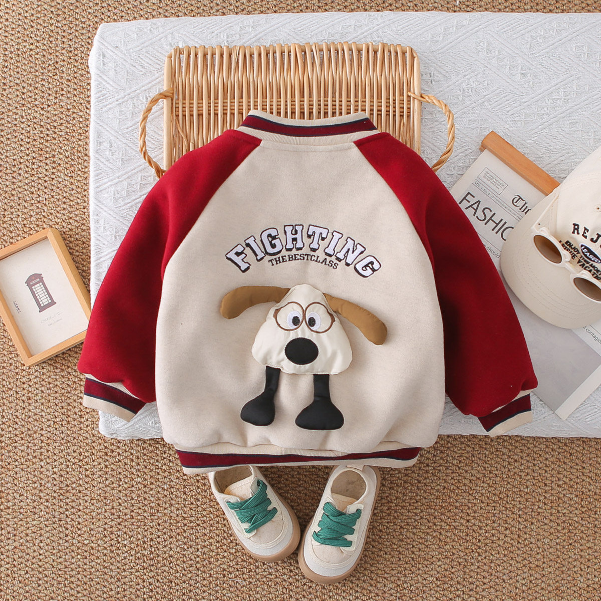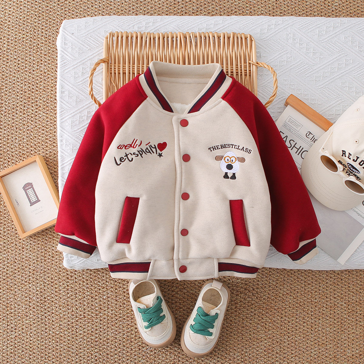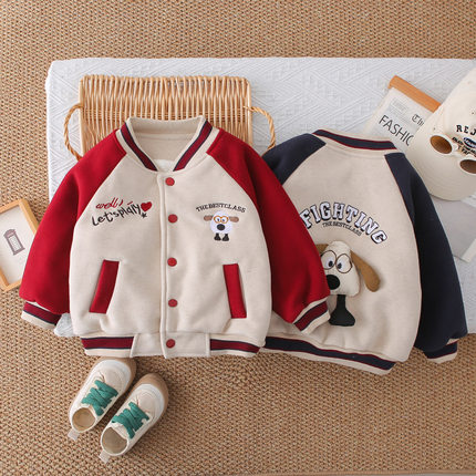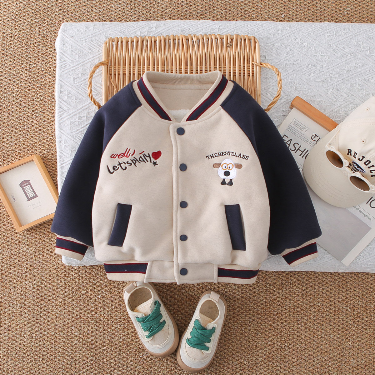 宝宝冬季加绒棒球服2025新款毛昵派克外套冬季卡通男童加厚棉服潮