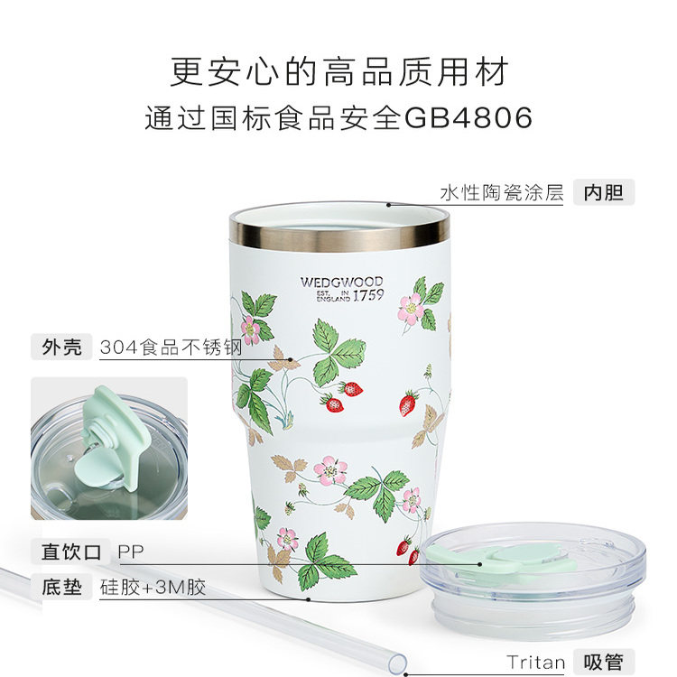 免费刻字 WEDGWOOD威基伍德野草莓保温杯吸管杯350ml随行杯保冷