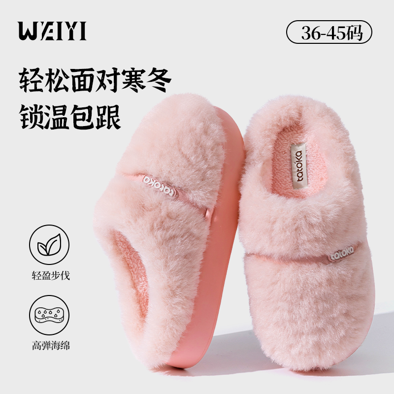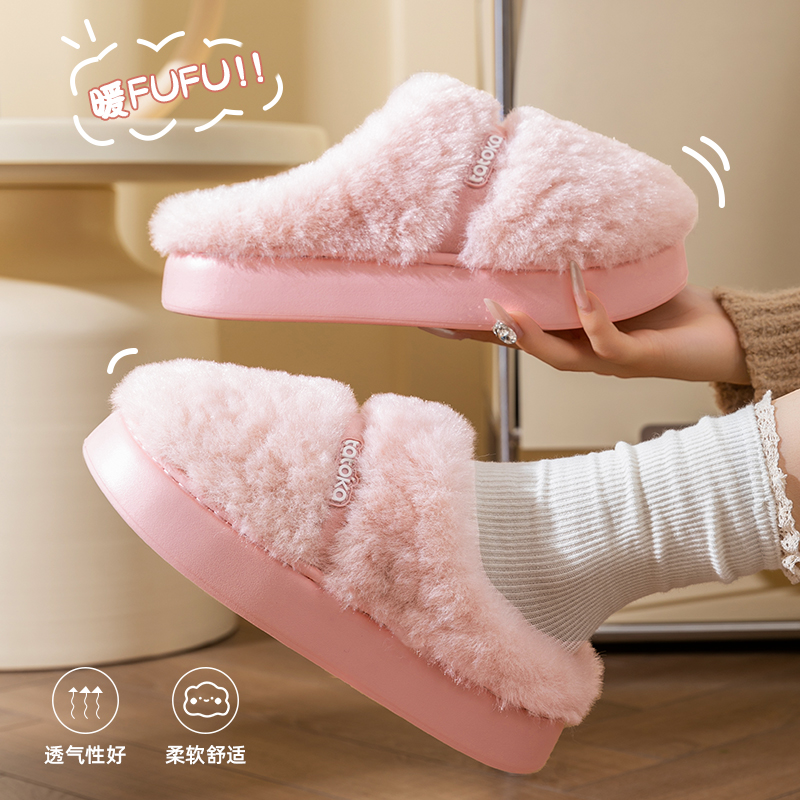 买1送1棉拖鞋女士秋冬季室内家居情侣一对保暖家用毛毛绒棉拖男款
