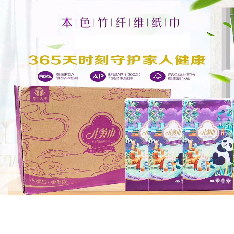正品爱善天使俏妃小黄巾竹纤维抽纸纸巾整箱餐巾纸盒装家庭装