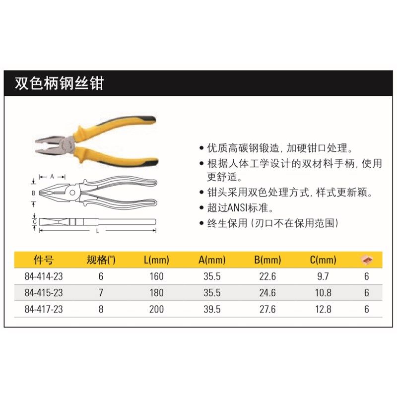 STANLEY 史丹利 双色柄 钢丝钳 6寸 7寸 8寸84-414 84-415 84-417