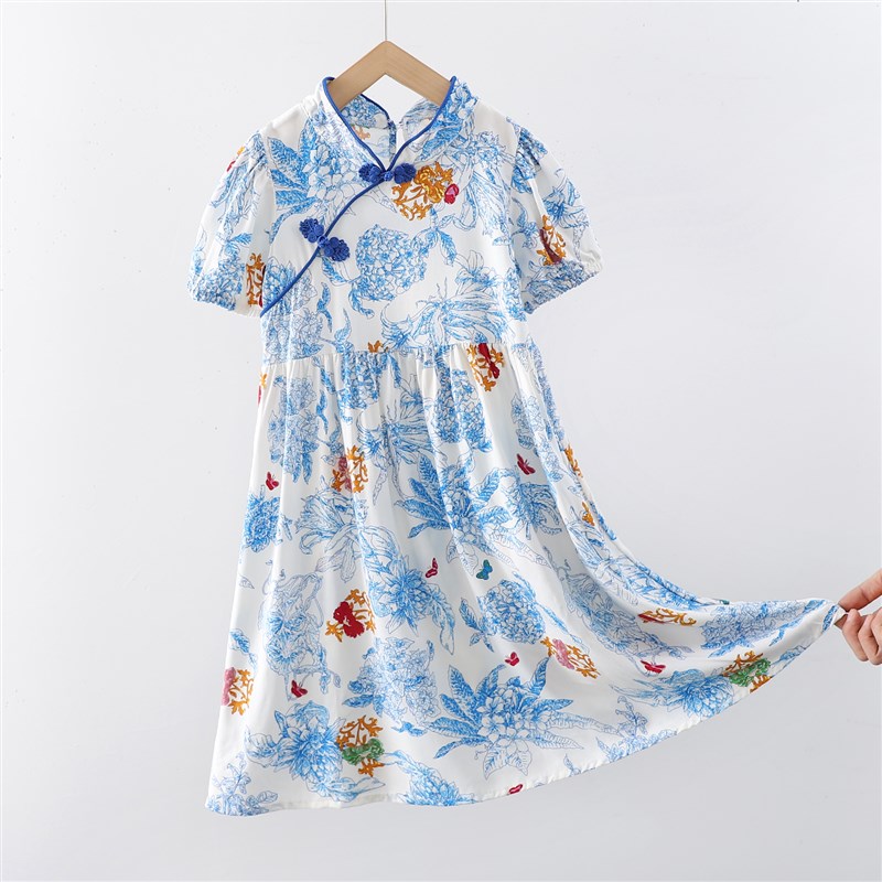 女童旗袍中小童女宝宝夏季连衣裙中小童女孩国风裙子大童公主裙