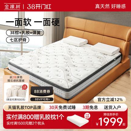 金橡树 独立弹簧床垫席梦思软硬两用天然乳胶椰棕床垫1.8m床 好梦