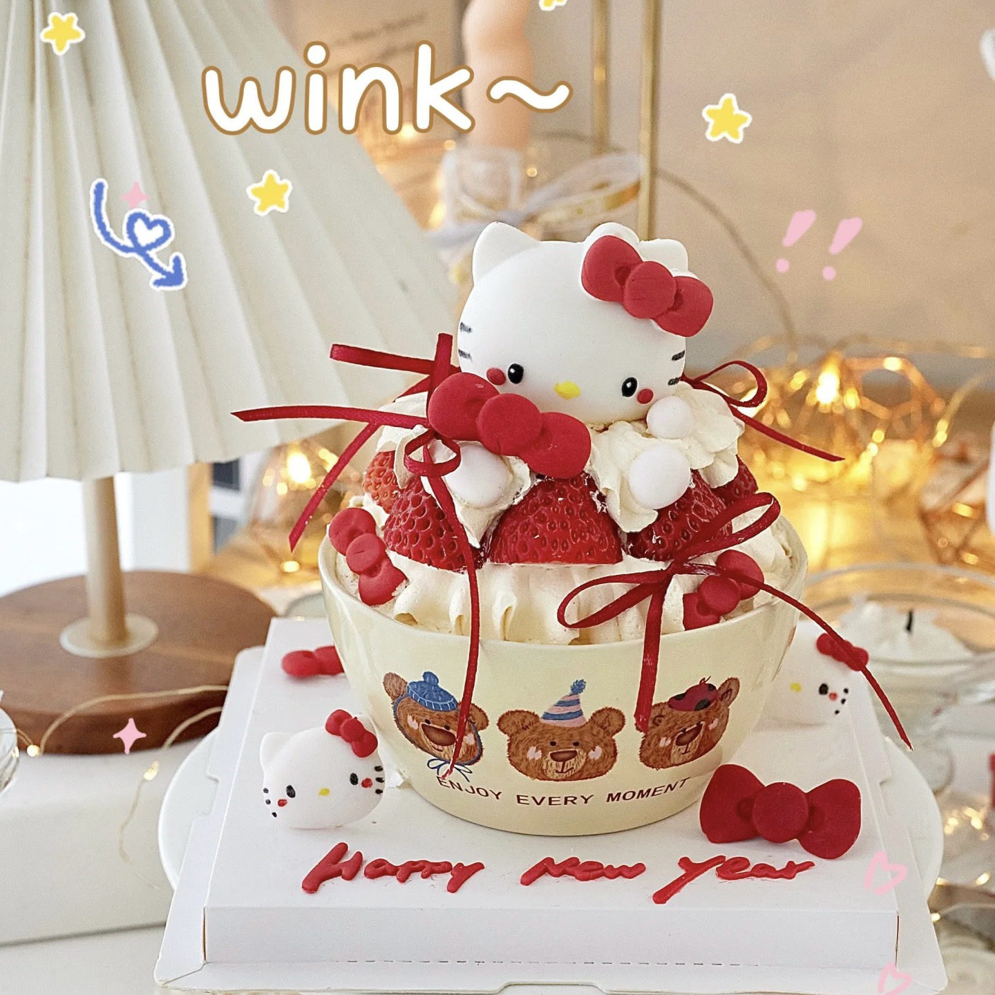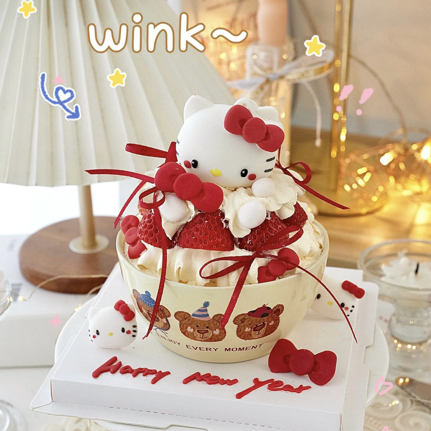 网红新年圣诞节韩国ins风KT猫草莓蛋糕三只小熊陶瓷碗创意甜品盆