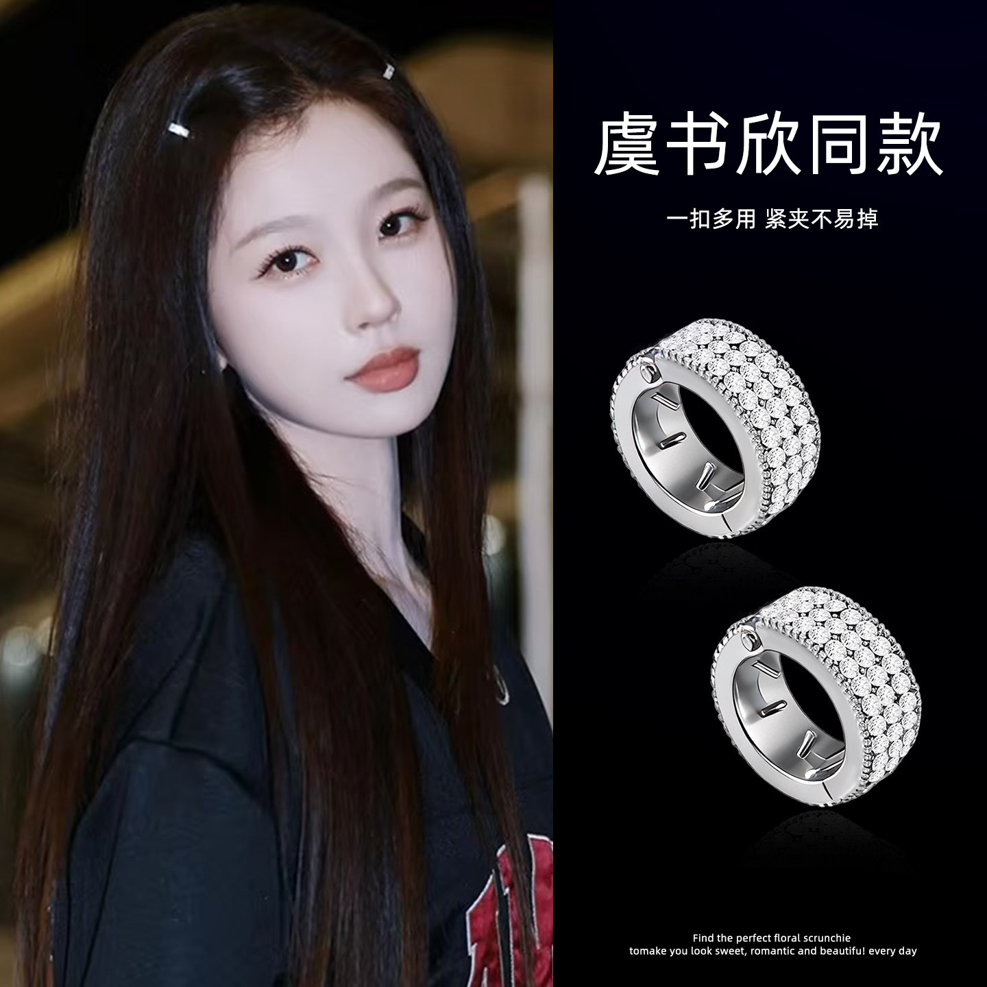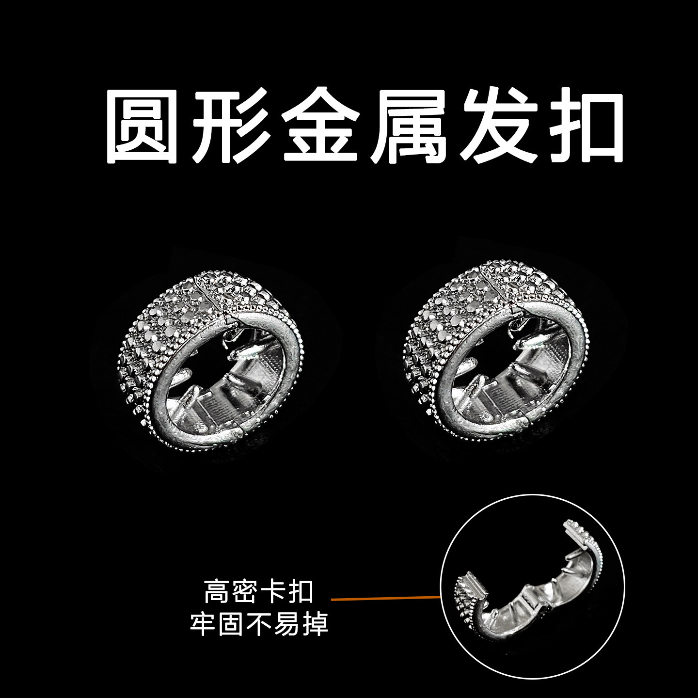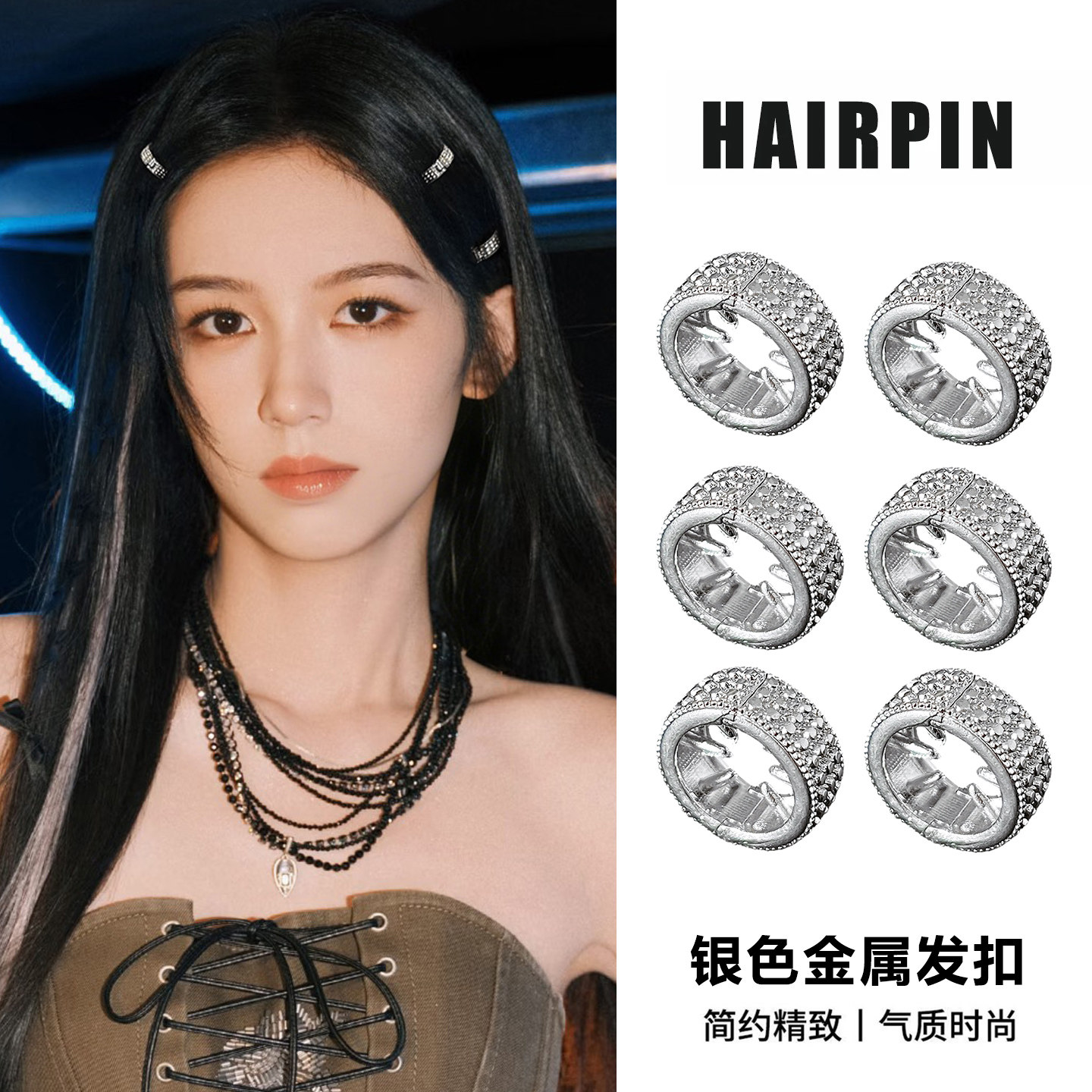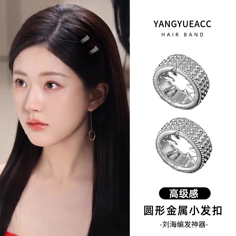 明星同款圆形金属银色小发扣边夹