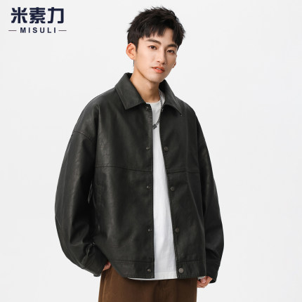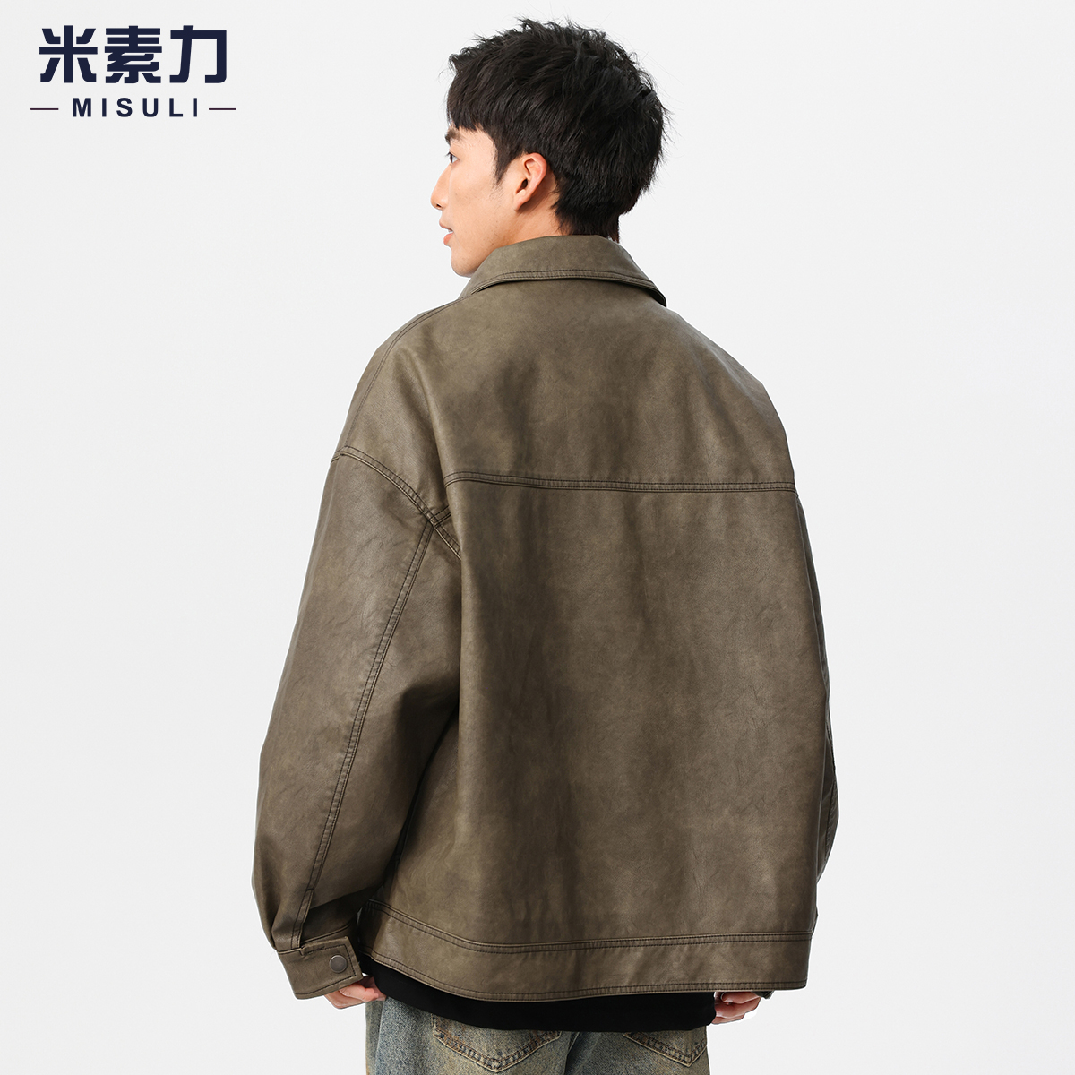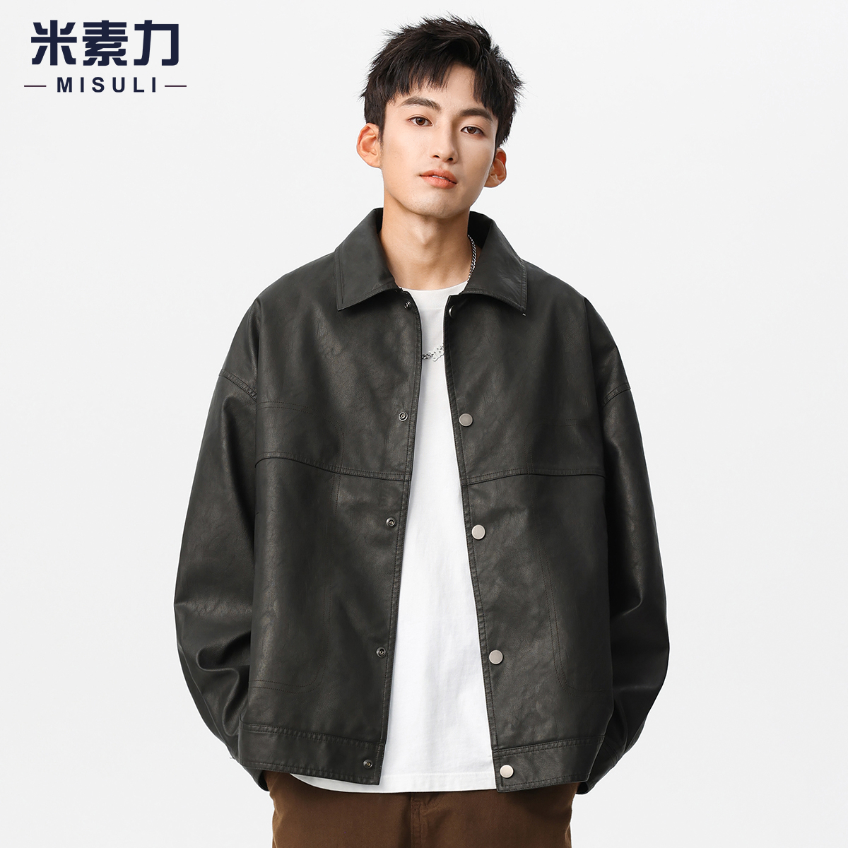 2025秋冬重工水洗皮衣外套男美式复古宽松翻领PU皮夹克新款上衣服