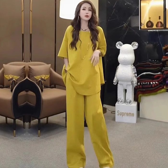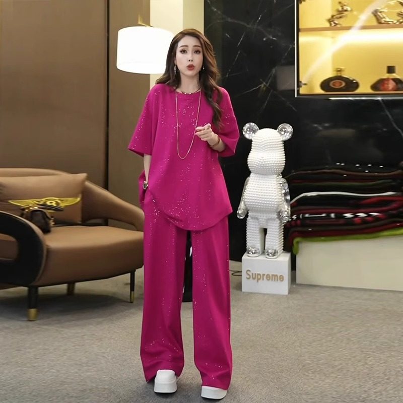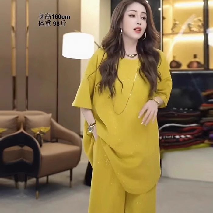 欧货短袖大码微胖mm时尚套装女夏季中老年设计感洋气阔腿裤两件套