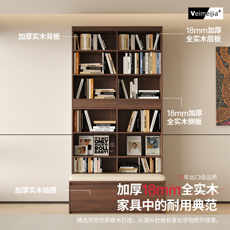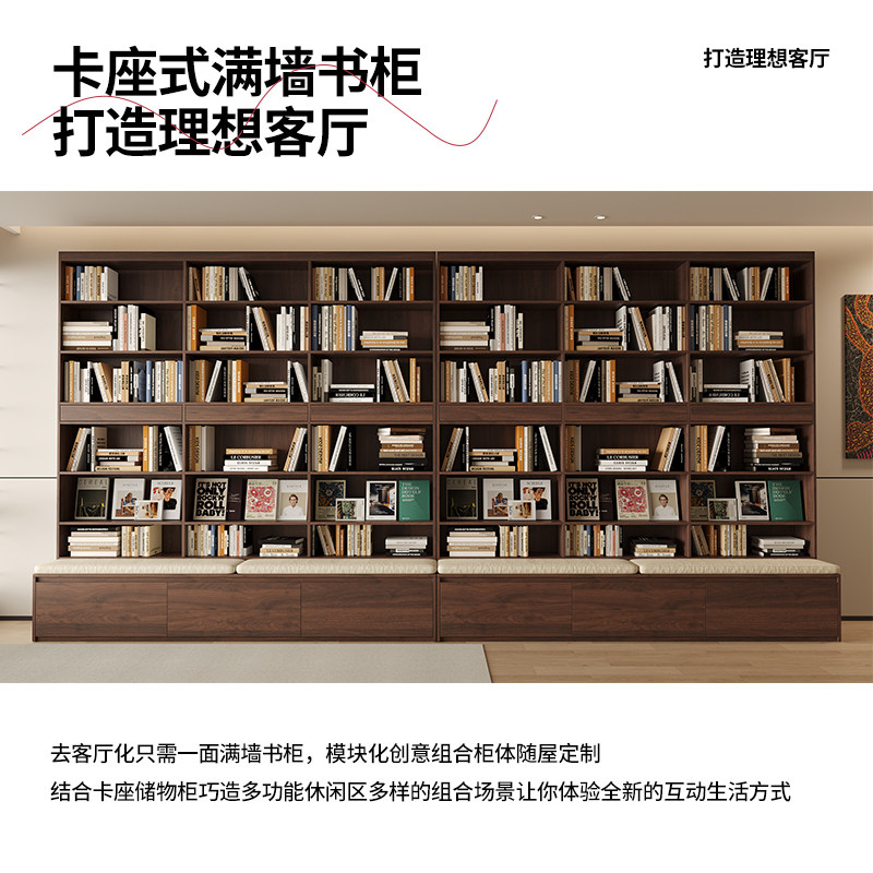 定制全实木卡座书柜中古风整墙客厅书架橡木满墙置储物落地展示柜
