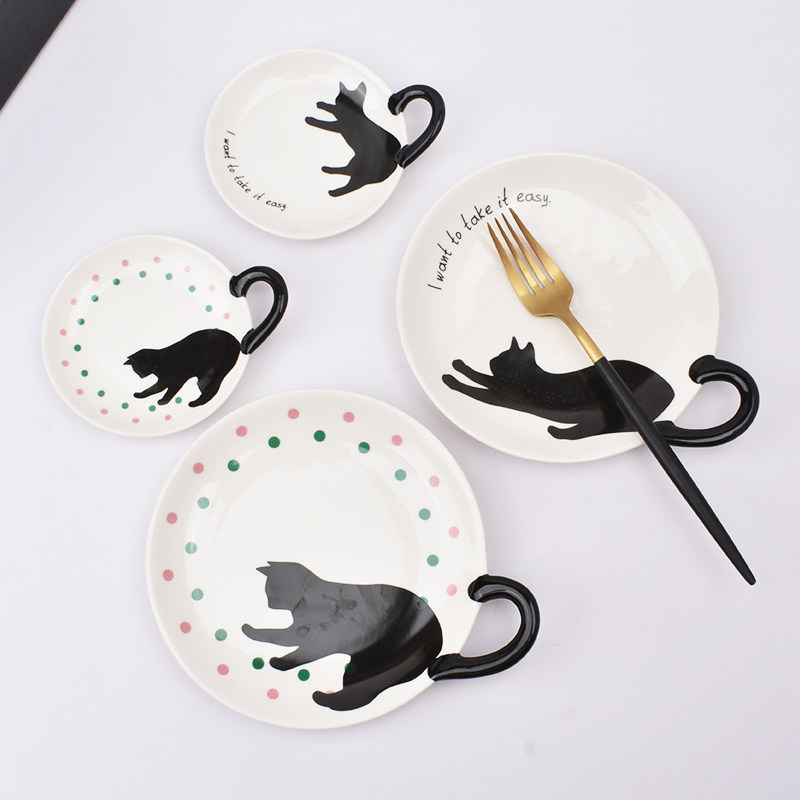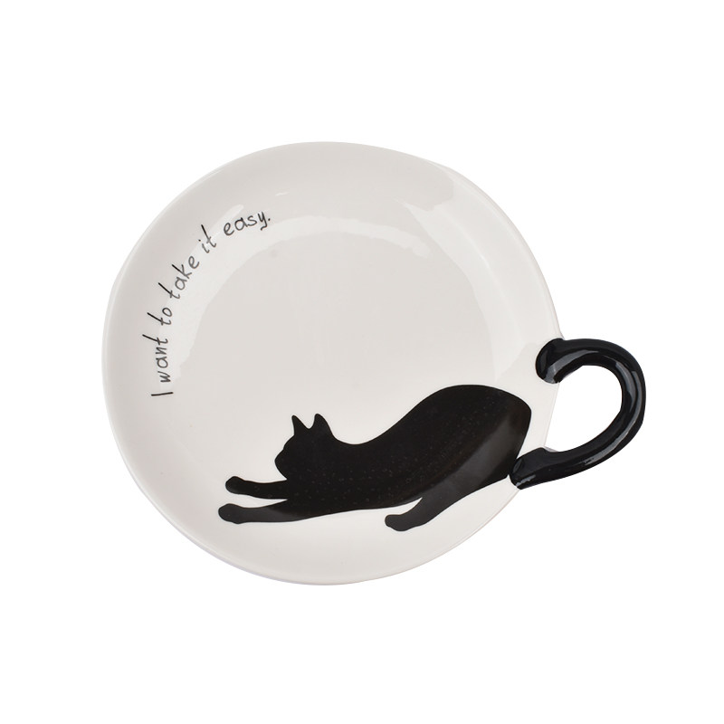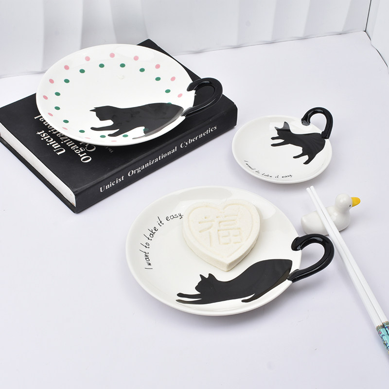可爱陶瓷猫咪造型带手柄平盘点心盘甜品盘儿童水果盘家用西餐盘子