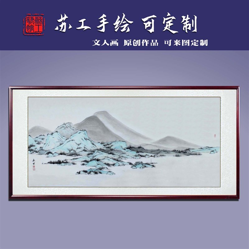 办公室挂画手绘山水画客厅国画定制新中式装饰画茶室禅意名家真迹