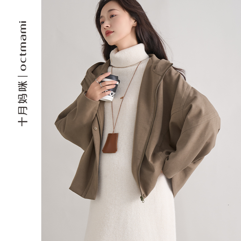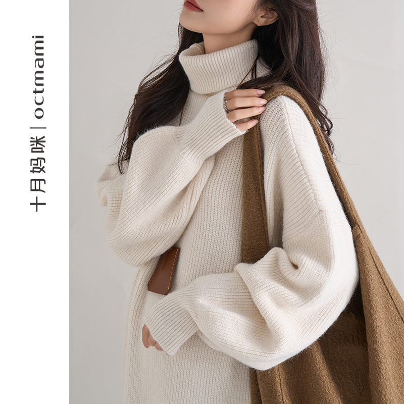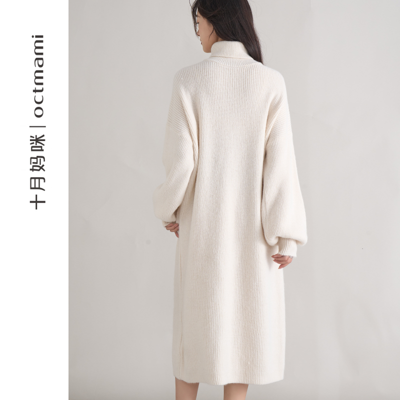 十月妈咪孕妇高领粗针毛衣裙2025新款冬季加厚保暖宽松针织连衣裙