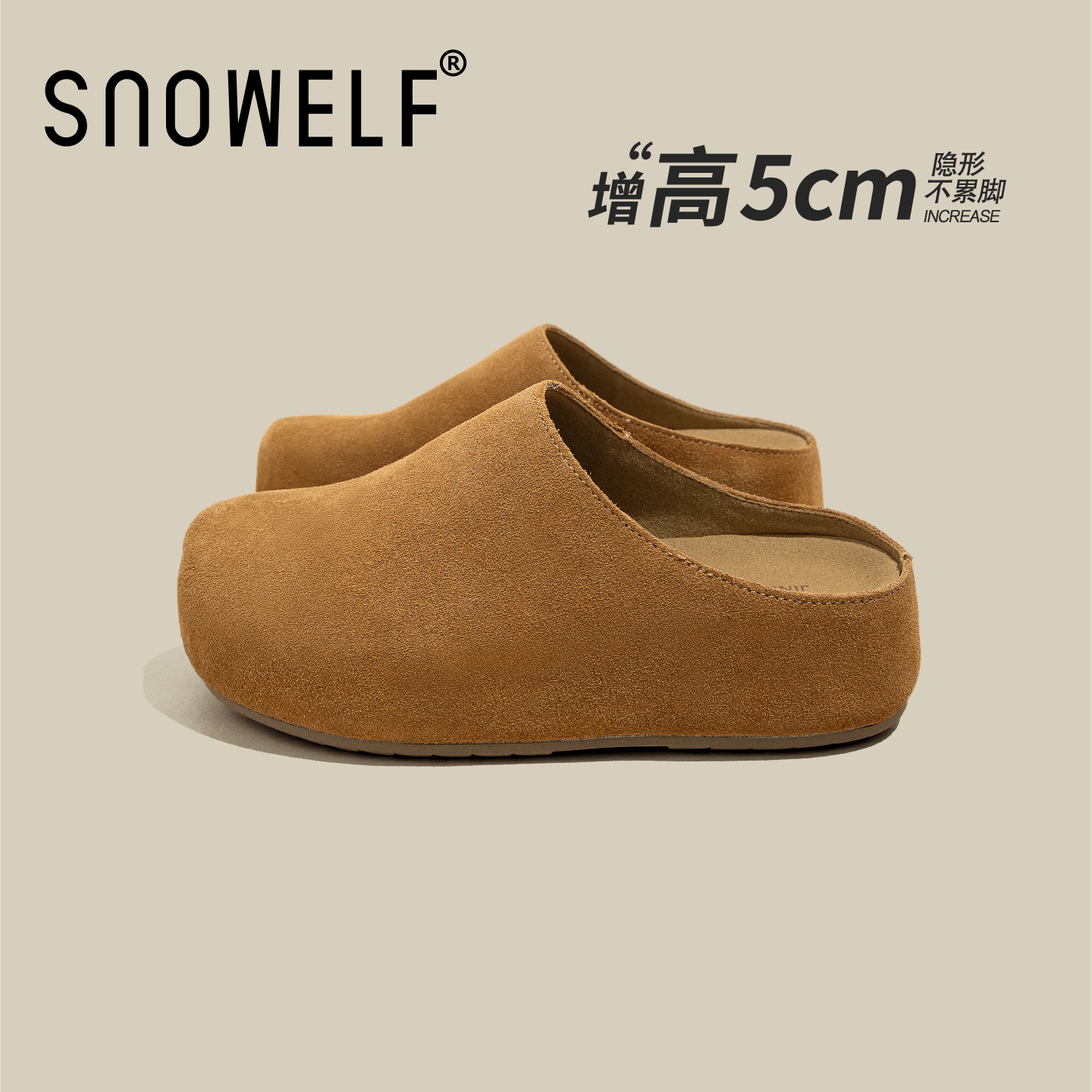 Snowelf女鞋真皮厚底勃肯鞋2025新款秋冬复古外穿半拖鞋增高鞋子