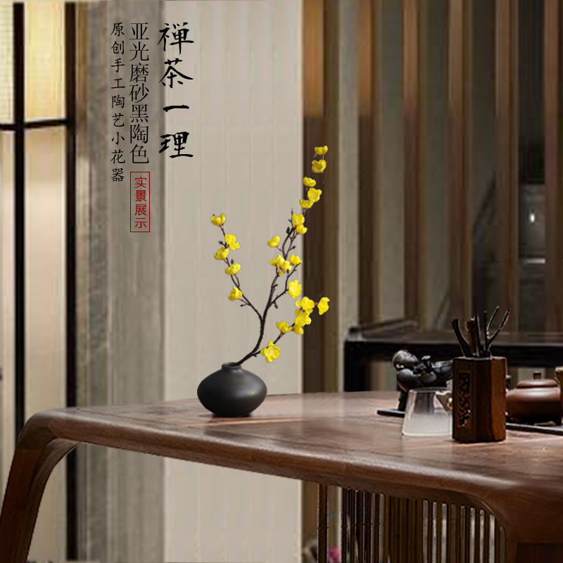 中式禅艺黑色亚光迷m你小花器茶道摆件陶瓷手工花瓶水培养植物陶