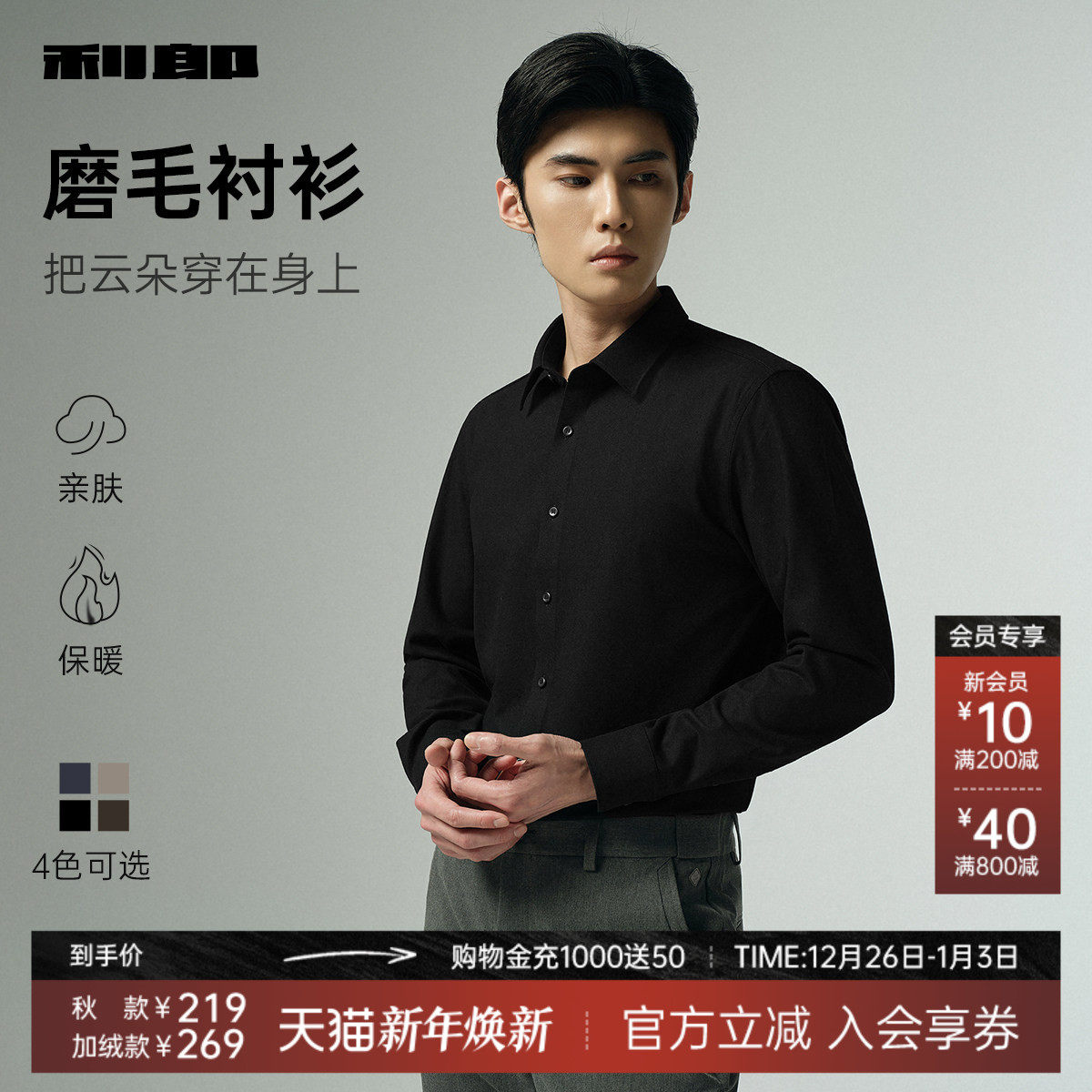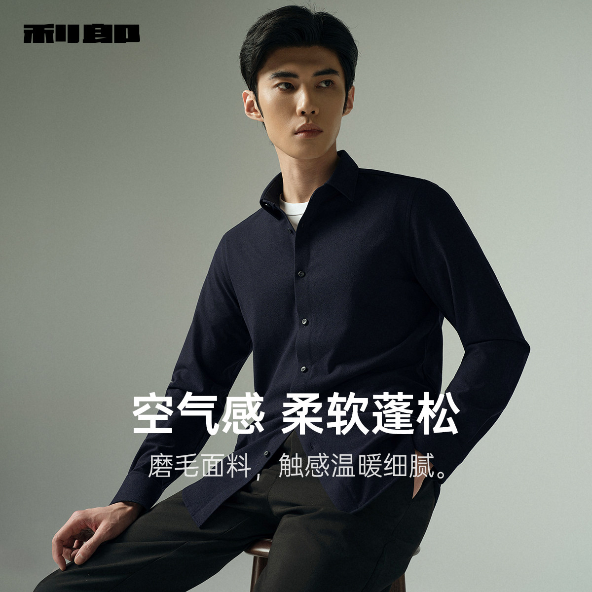 【磨毛】利郎官方衬衫男士2025秋季新款商务休闲纯色尖领男装衬衣