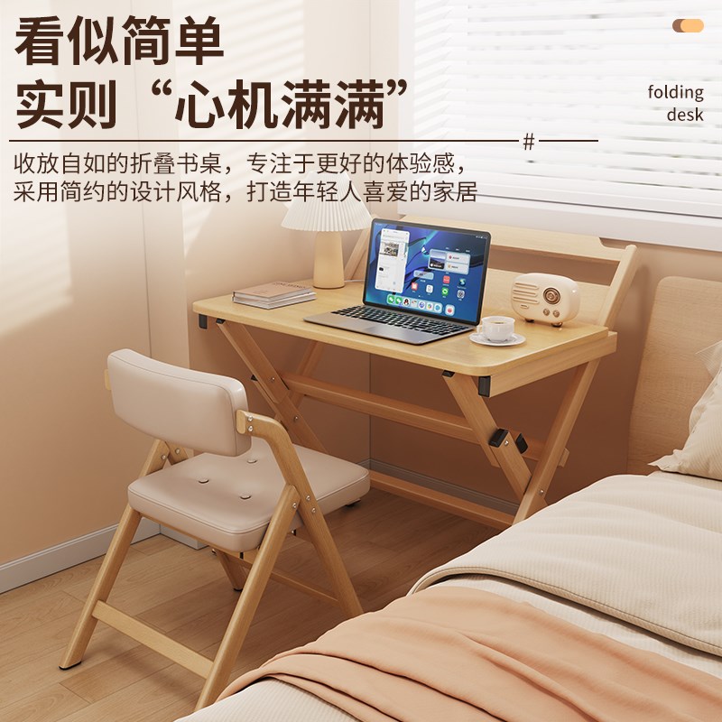 实木儿童长条书桌家用书房折叠桌卧室床边桌写字桌小户型简易桌子