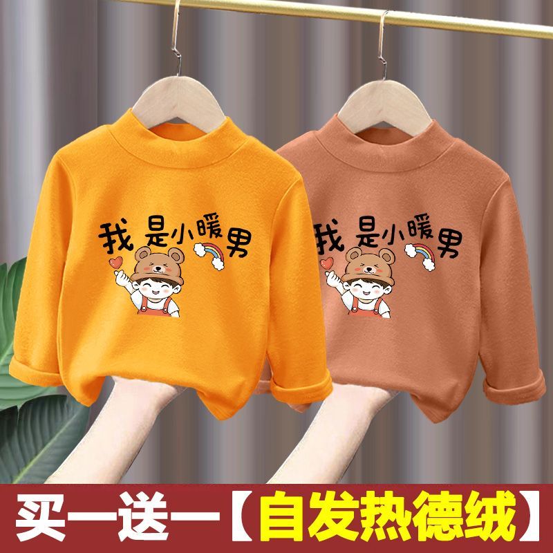 秋冬季儿童加厚保暖上衣加绒打底衫自发热德绒男童新款半高领T恤
