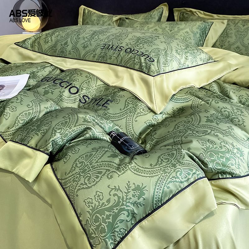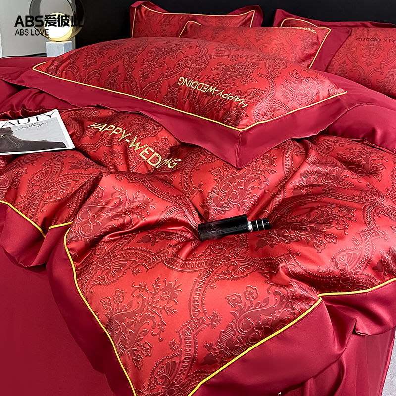 ABS爱彼此床单被套四件套大红婚庆床上用品轻奢家用床笠四季通用