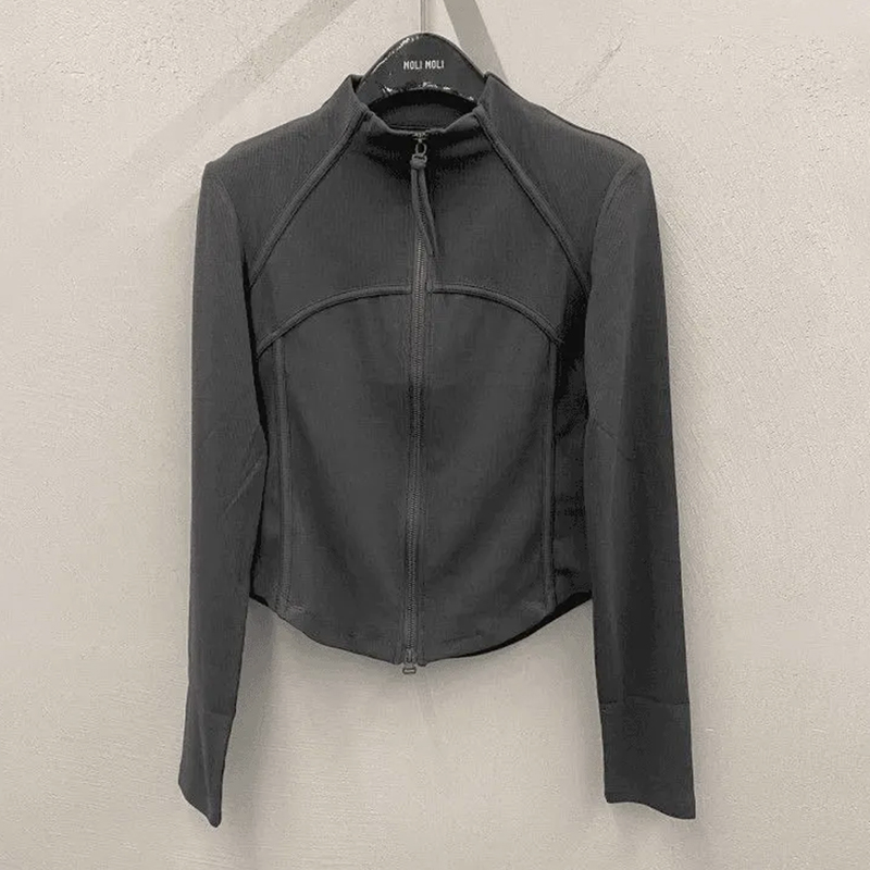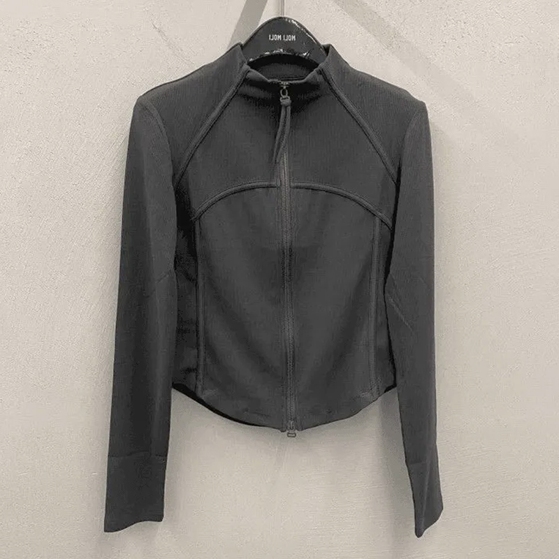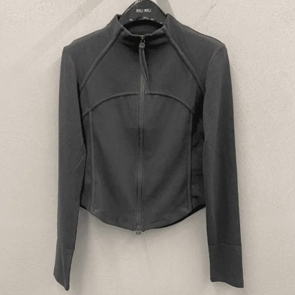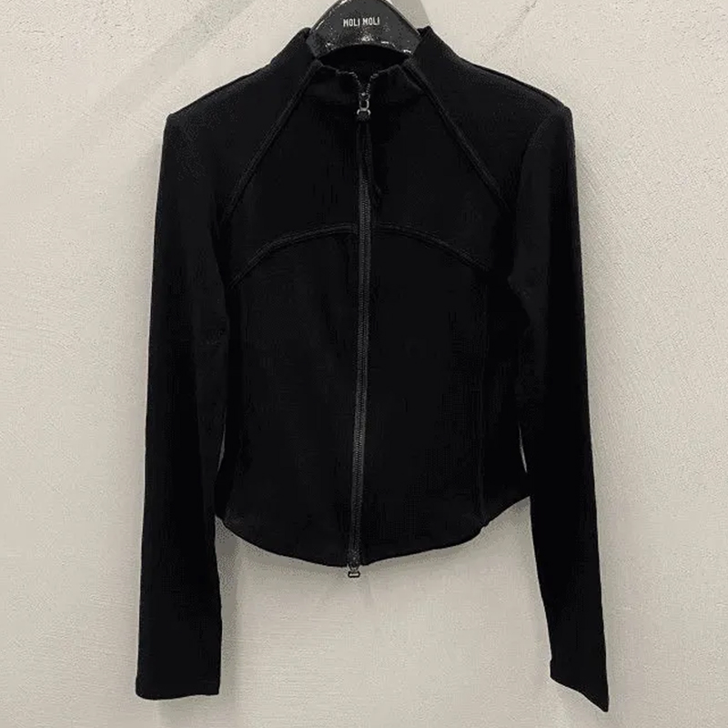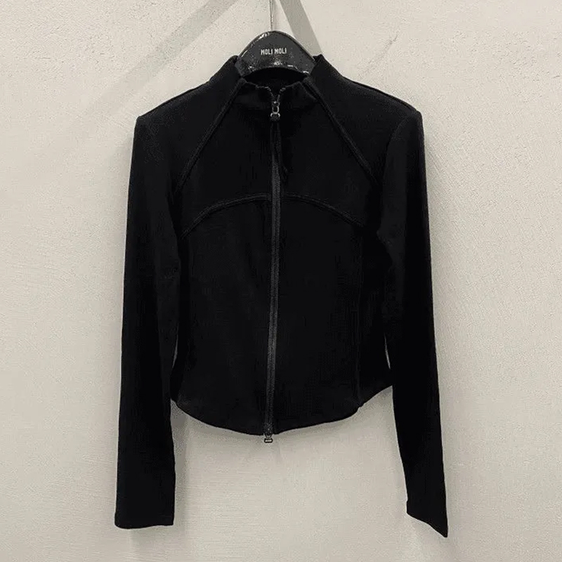 设计感长袖T恤女春秋款休闲运动风气质立领拉链短外套修身短上衣