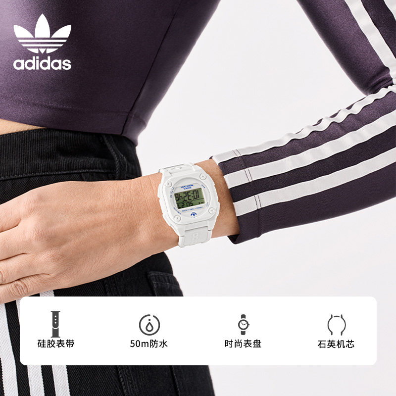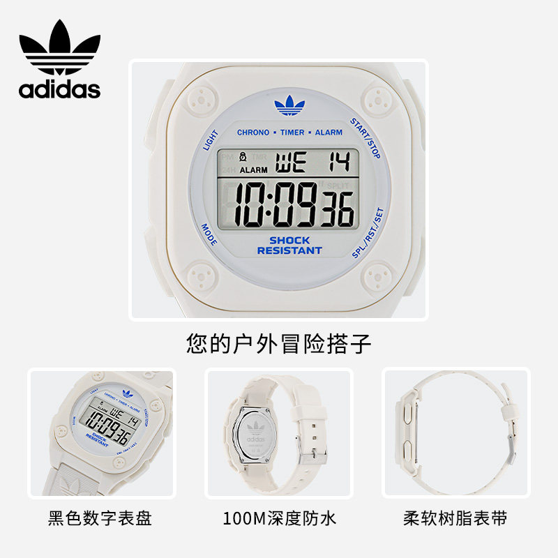 adidas Originals阿迪达斯三叶草户外运动防水电子手表男女学生