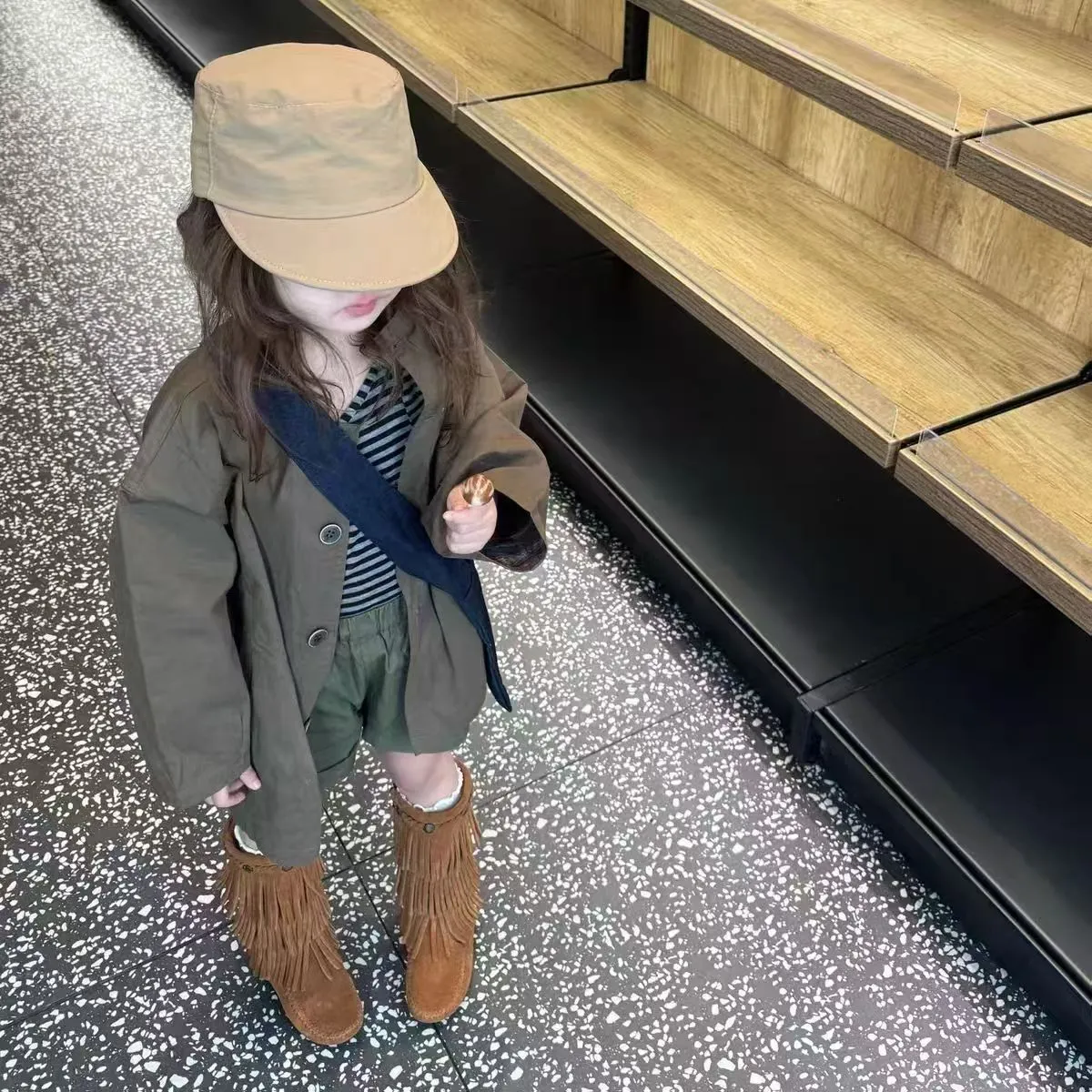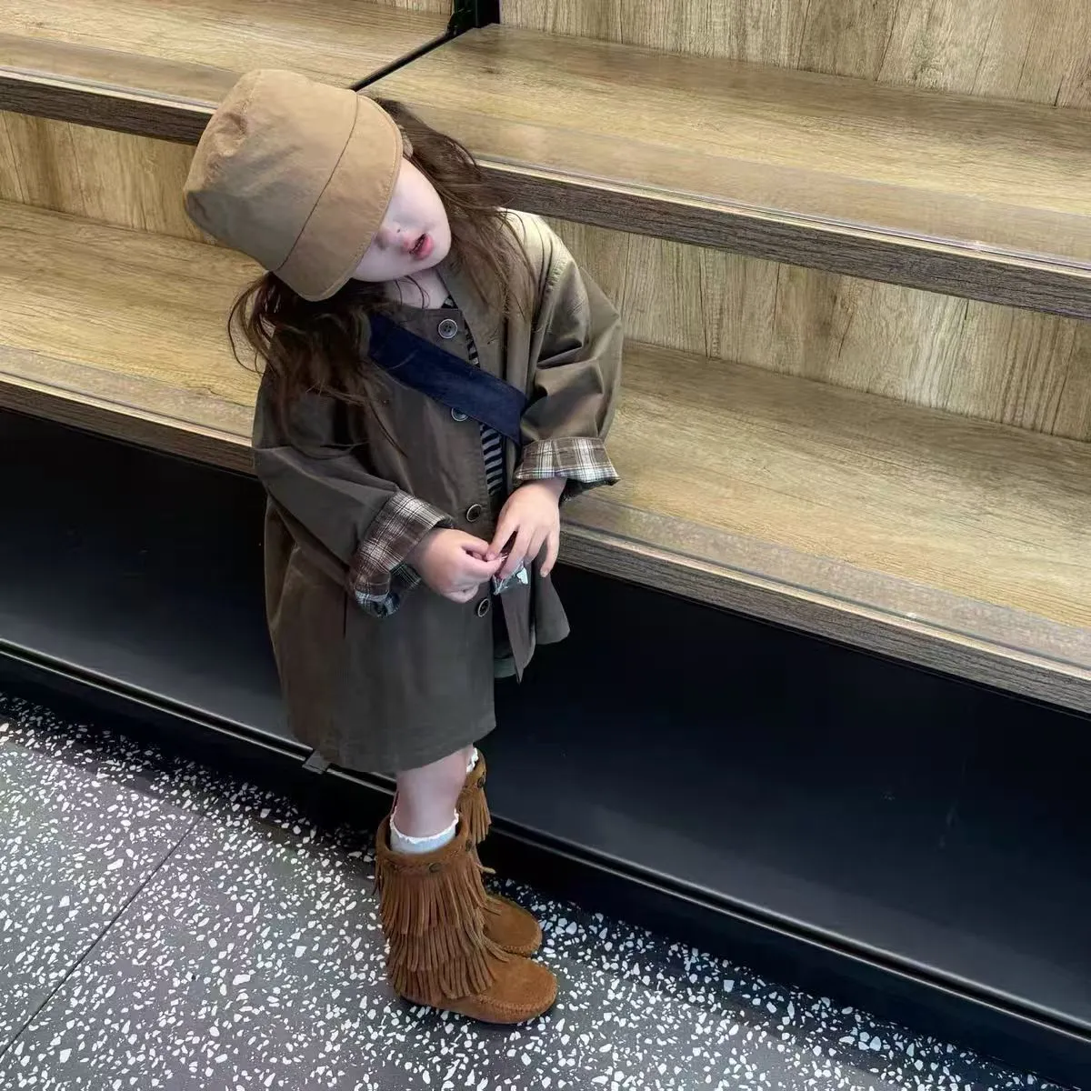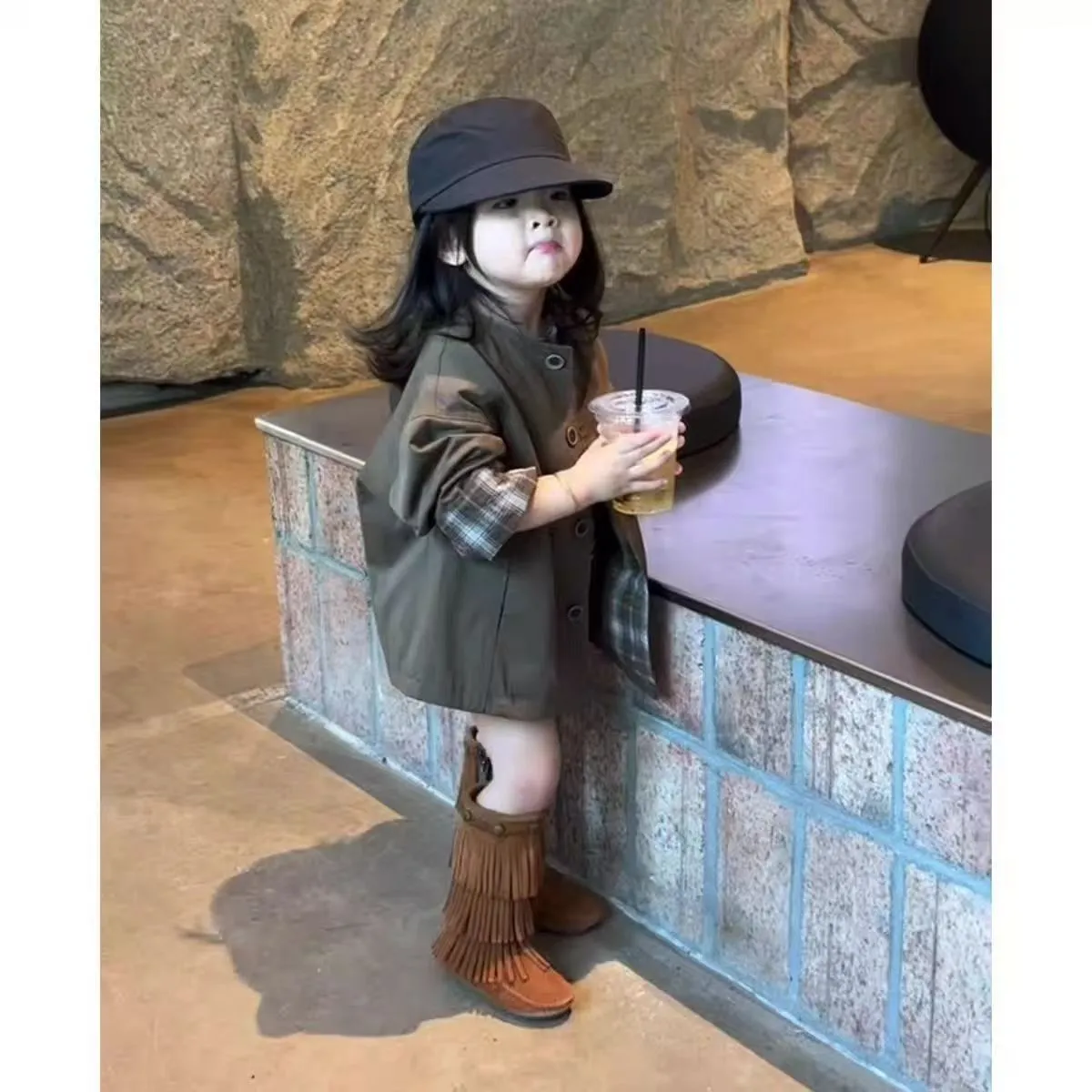 男女童外套秋装新款2025儿童休闲时尚洋气中长款宝宝拼接英伦风衣