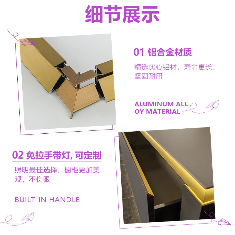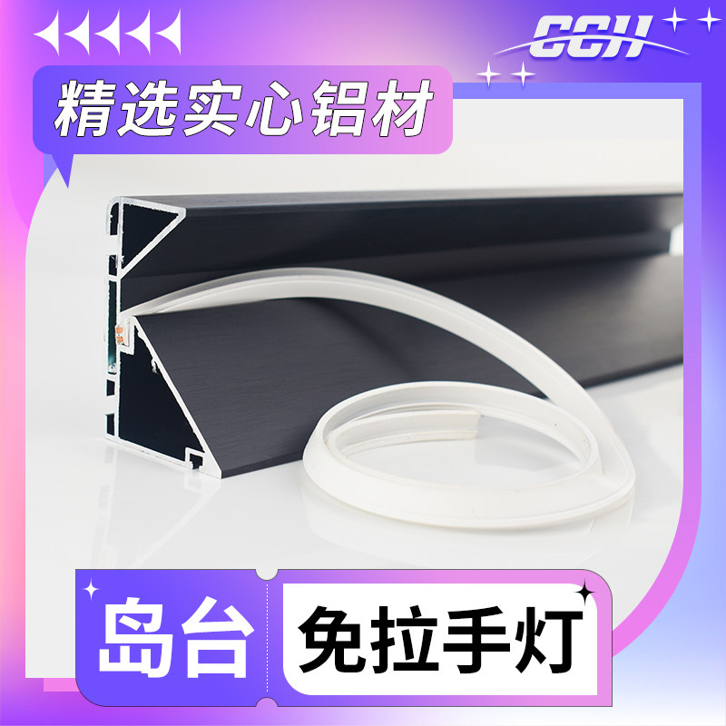 厨房橱柜岛台免拉手带灯岩板台面灯带型材铝合金K型悬浮隐形拉手