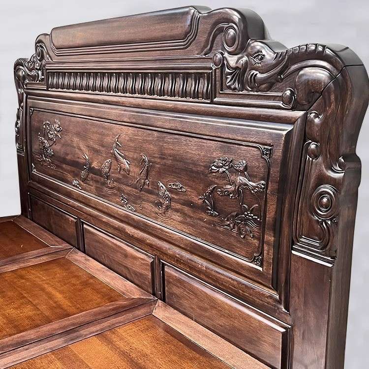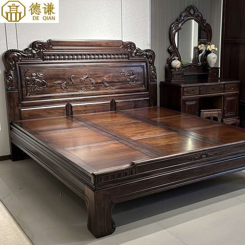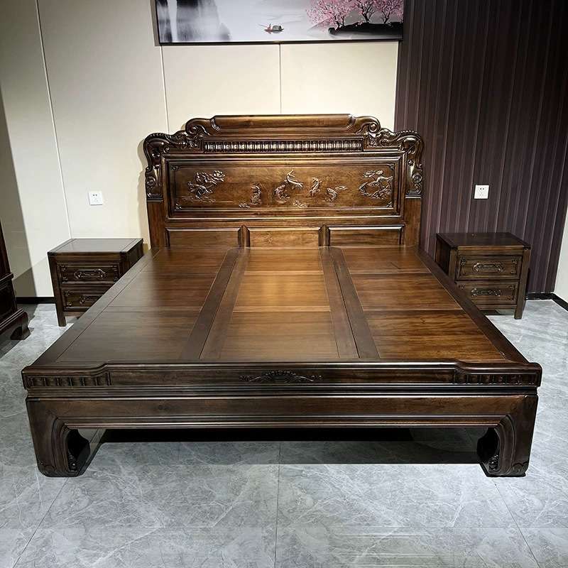 南美紫檀木仿古大床全实木床中式明清古典雕花家用双人主卧1.8米