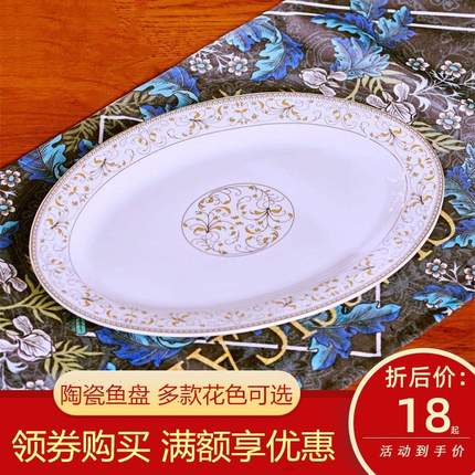 景德镇家用陶瓷日式深盘鱼型餐具套装菜碟创意新款椭圆大号鱼盘子