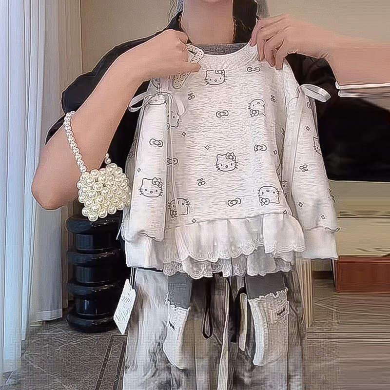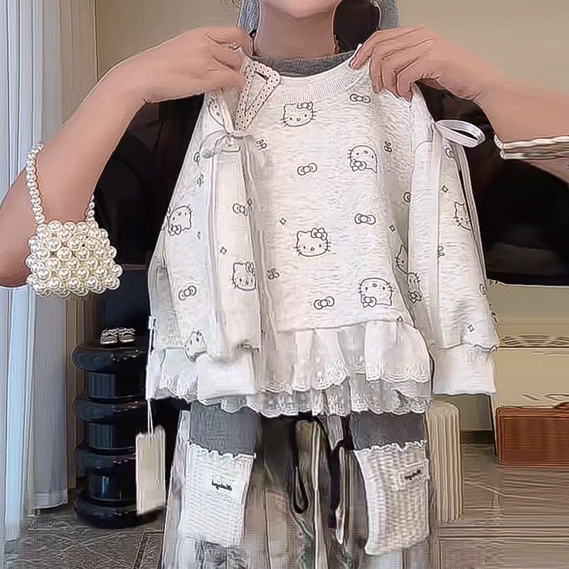 女童可爱满印凯蒂猫套装2025春秋季新款时尚卡通圆领卫衣两件套潮