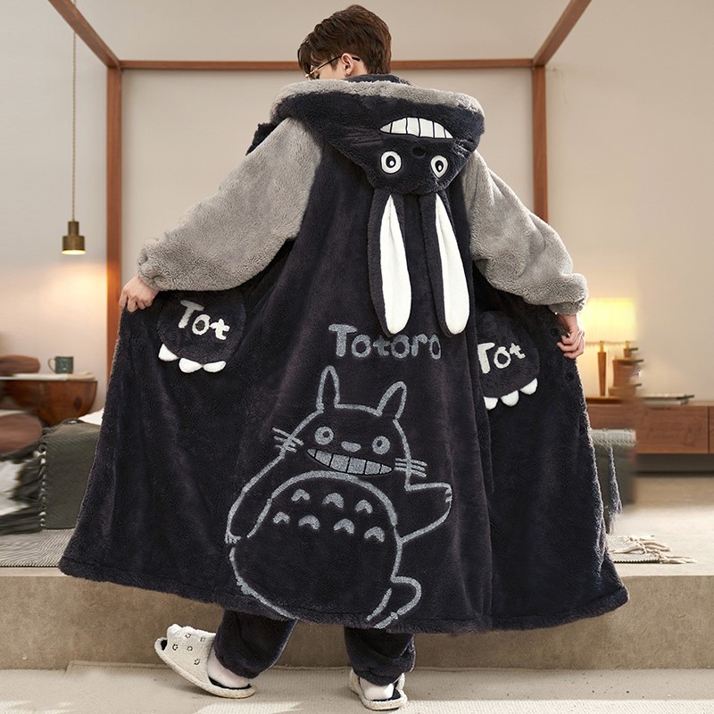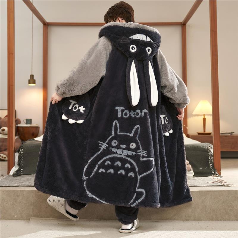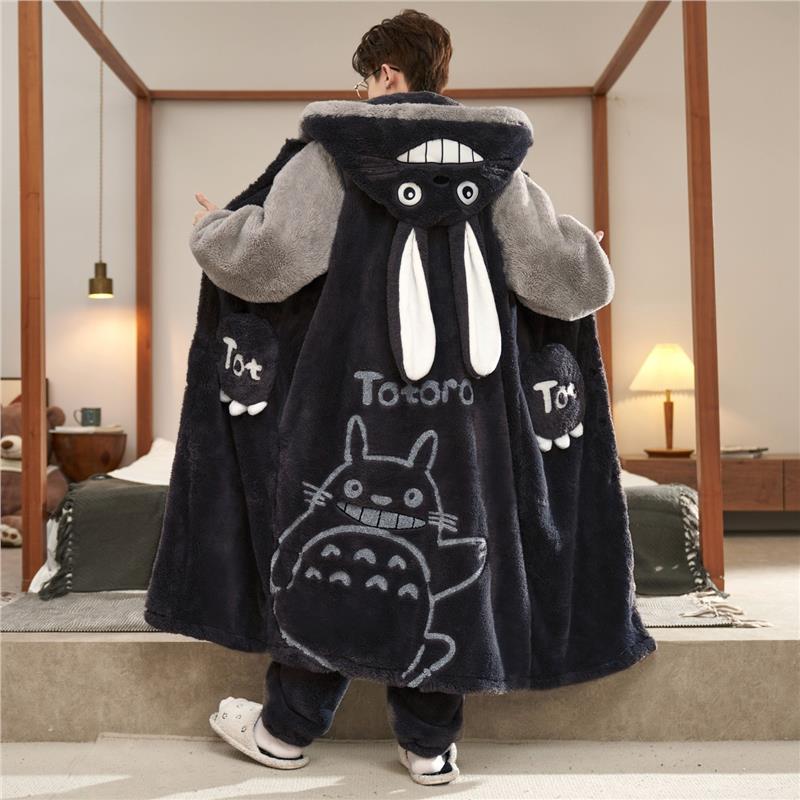 冬季加绒加厚珊瑚绒男士睡衣男款睡袍青少年学生卡通家居服秋冬款