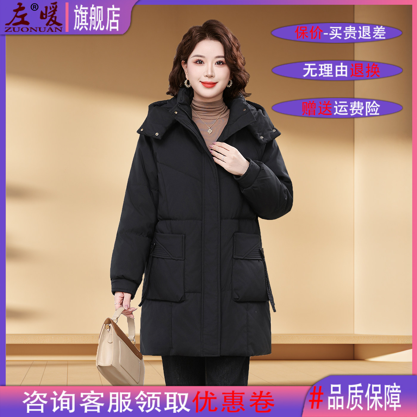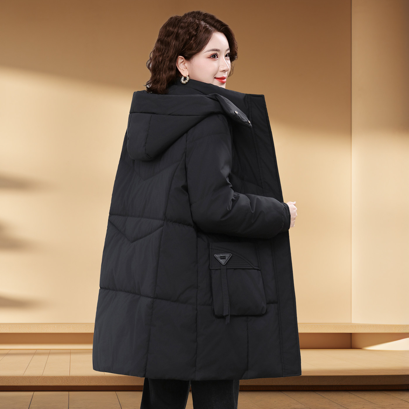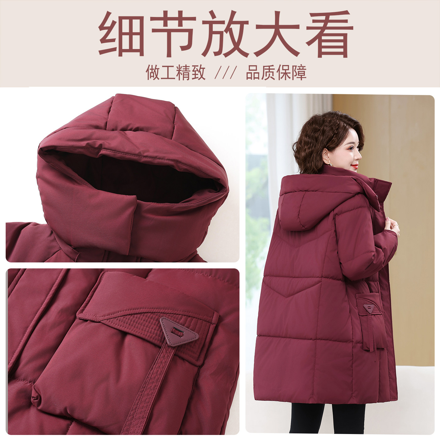 特大码中老年女装长款棉服肥胖妈妈保暖棉袄宽松加厚外套连帽可拆