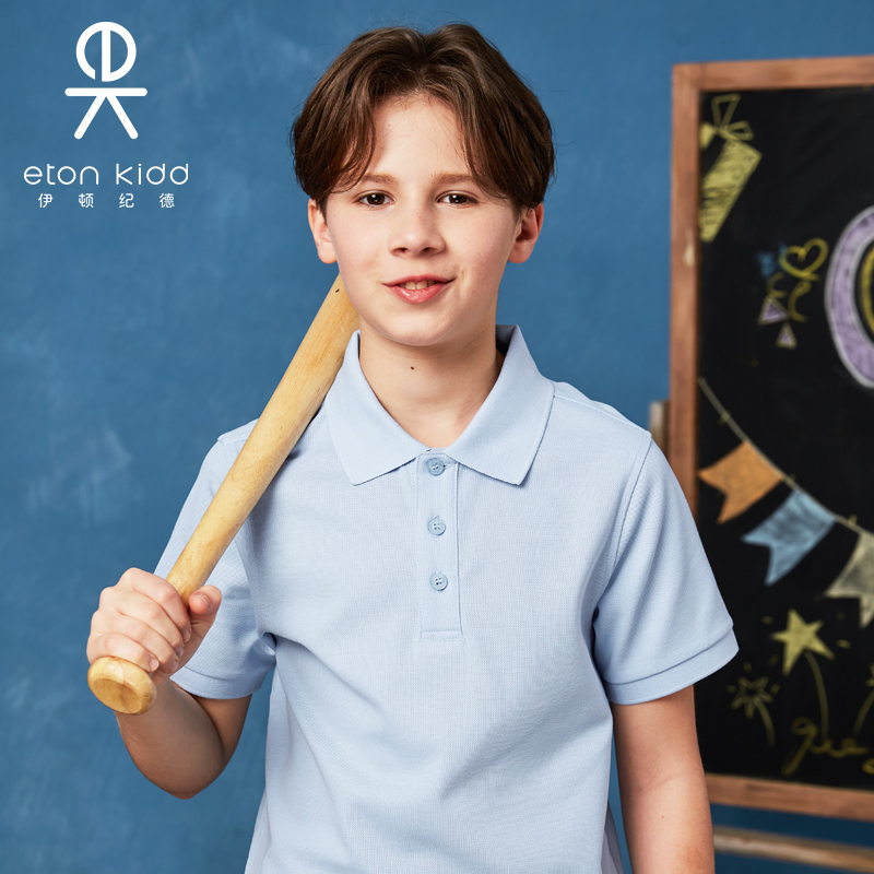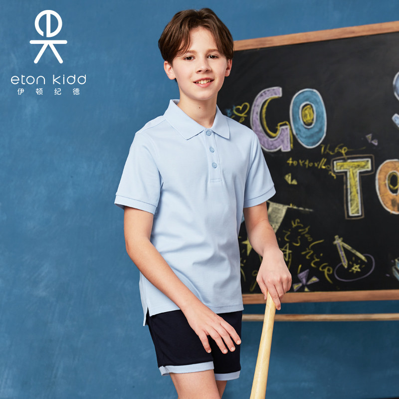 伊顿纪德 2024秋季浅蓝色珠地混搭时尚运动舒适套装短袖T恤