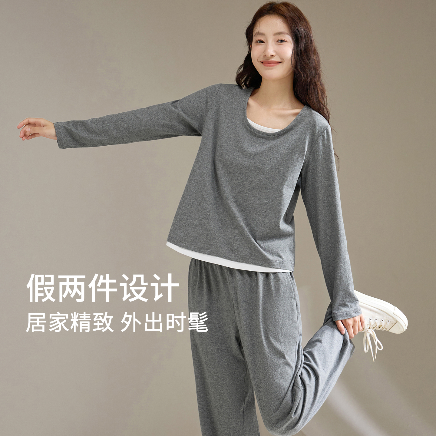 康妮雅睡衣女秋款纯棉长袖长裤2025新款假两件简约休闲全棉家居服