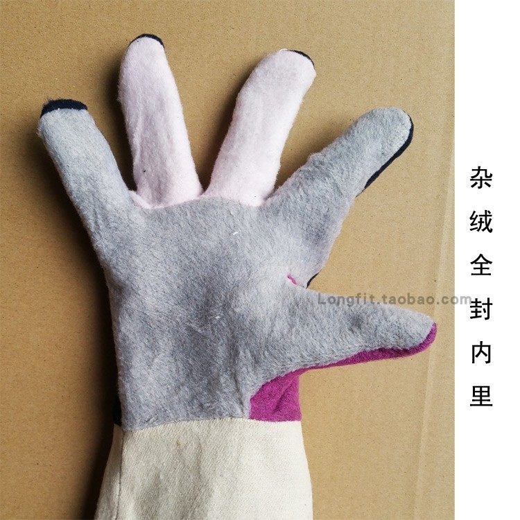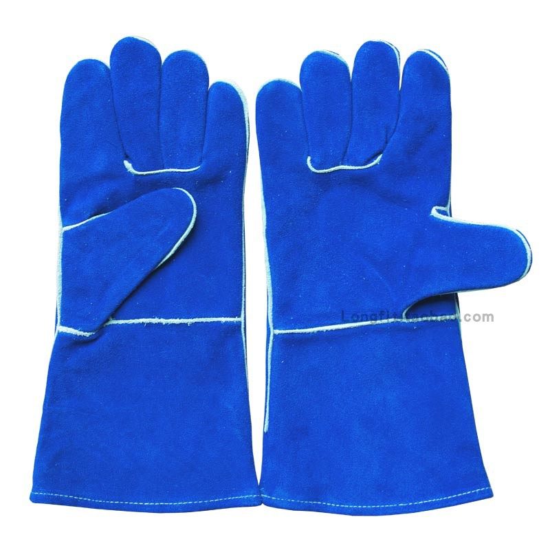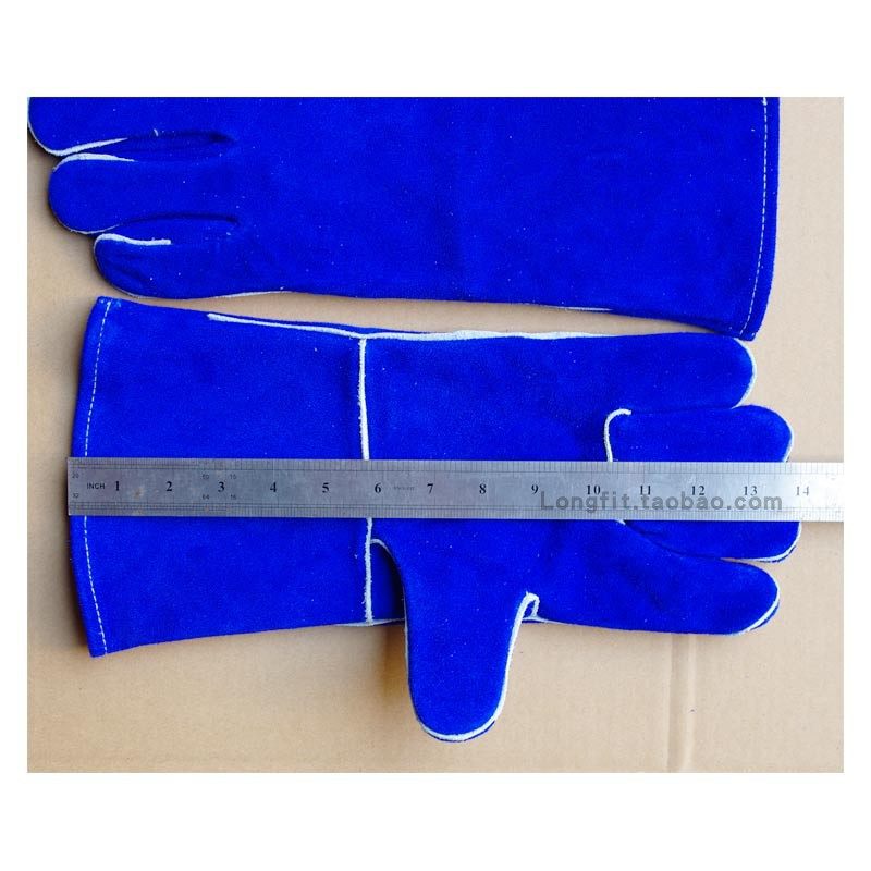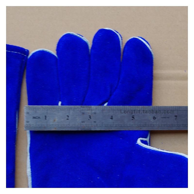 防火线缝长款蓝色牛皮电焊手套