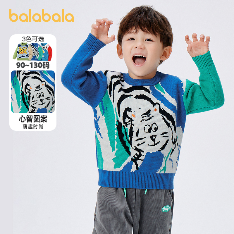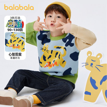 巴拉巴拉男童毛衣小童宝宝保暖针织衫儿童拼色毛衫冬装新款童装潮