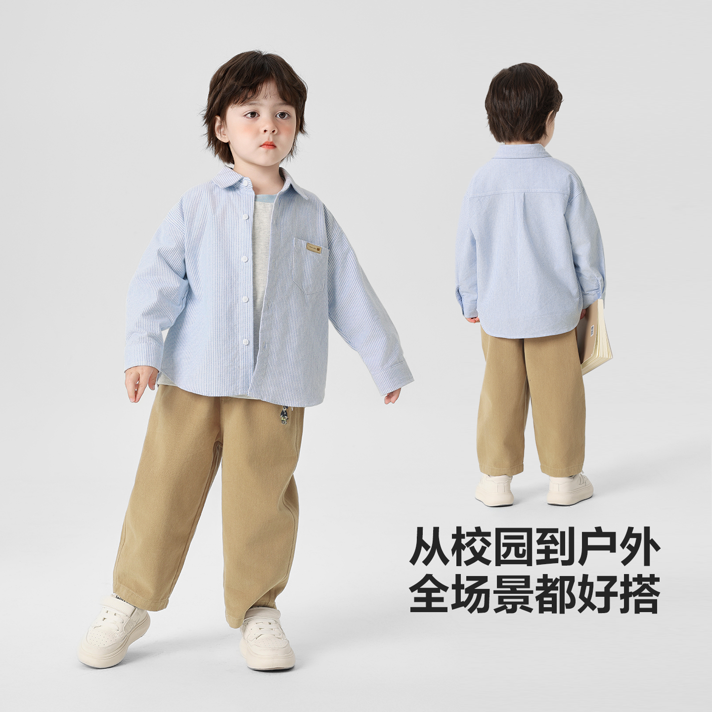 右欧男童衬衫女童中大童衬衣儿童内搭纯棉百搭春秋季新款童装上衣