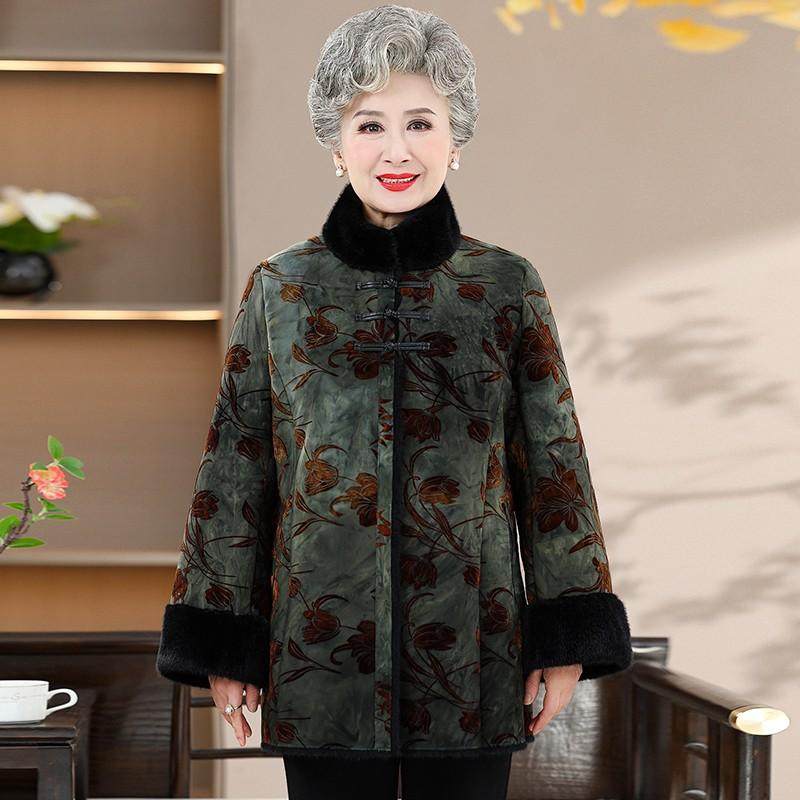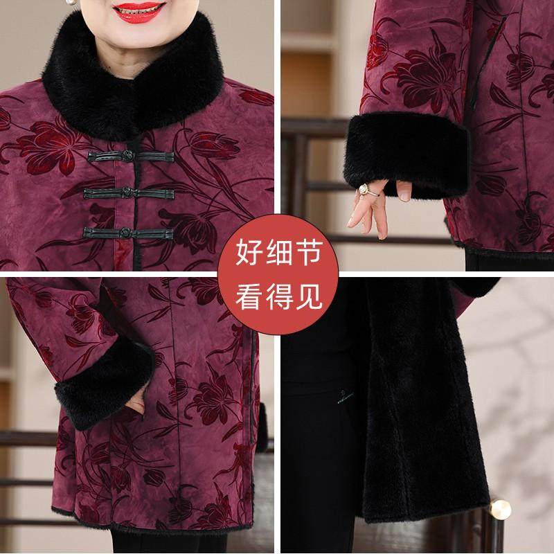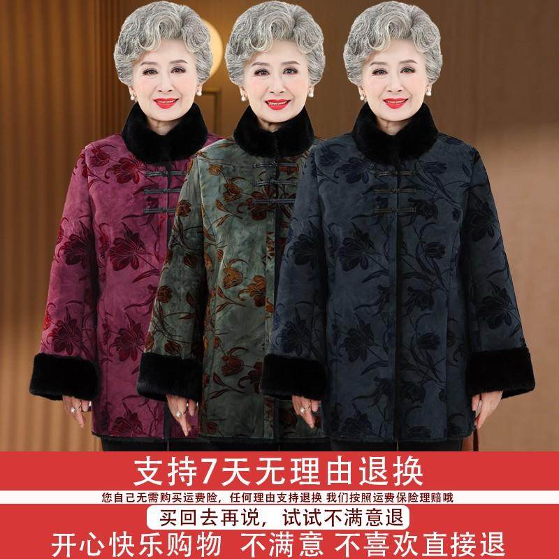 中老年奶奶冬装外套大码女装水貂毛领棉衣加厚保暖棉服老太太棉袄