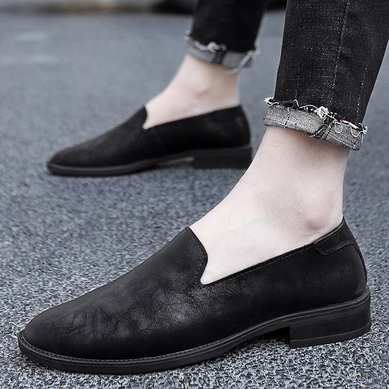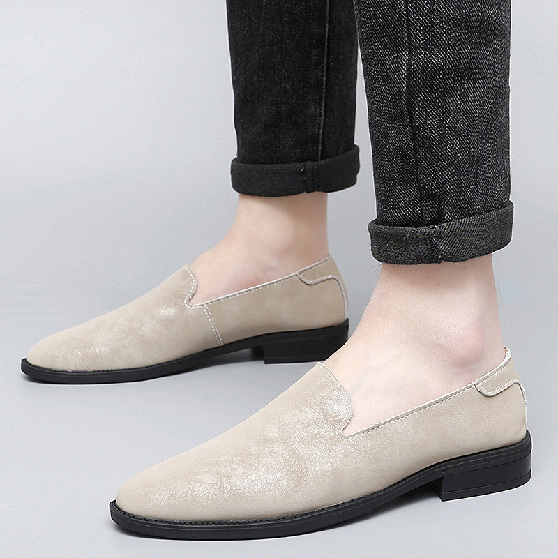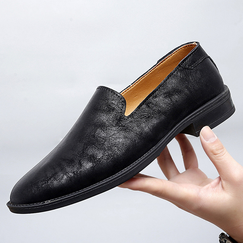尖头休闲男皮鞋2025新款轻便软低真皮小码时尚潮流一脚蹬豆豆鞋男
