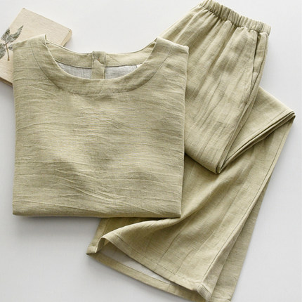 情侣棉质莱赛尔亚麻短袖家居服