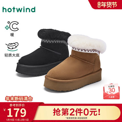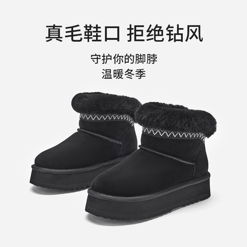 热风加绒雪地靴女2025年冬季新款复古保暖休闲靴小个子加厚棉鞋