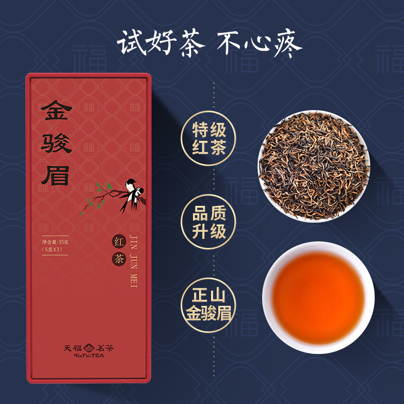 天福茗茶金骏眉红茶 精品品鉴装武夷山小种15g*7盒装