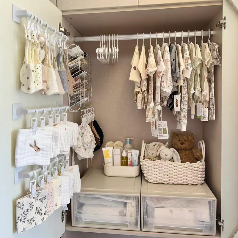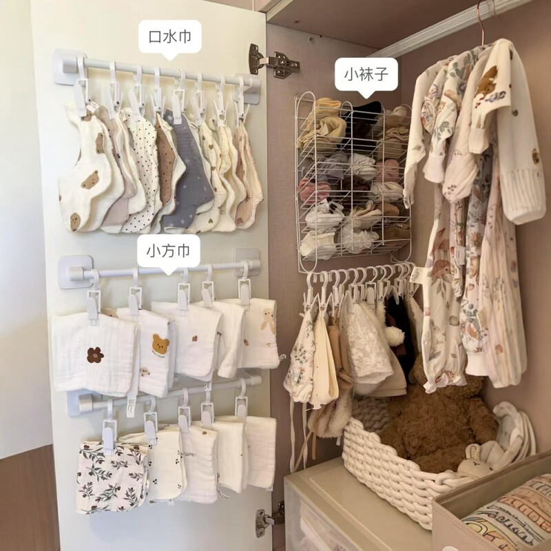 宝宝衣柜收纳神器婴儿小方巾口水巾挂钩儿童帽子袜子架衣物收纳箱