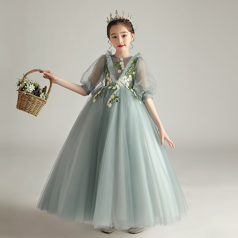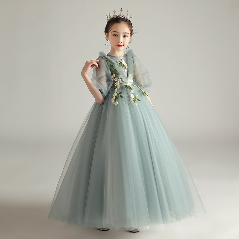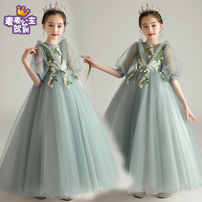 森系女童连衣裙走秀礼服主持人钢琴演出服公主裙蓬蓬纱长裙小女孩
