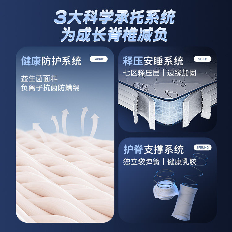 Serta/舒达 哈雷青少年儿童护脊床垫 分区床垫乳胶床垫双面睡