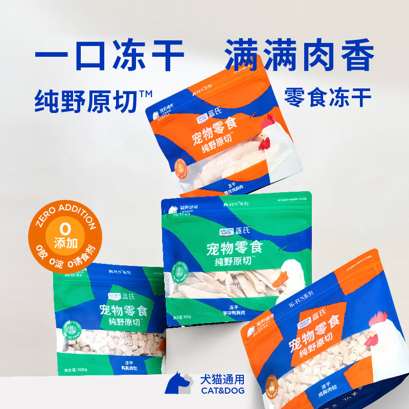 蓝氏纯肉原切冻干猫零食鸡胸肉鸡肉粒鸭肉磨牙冻干宠物零食狗零食