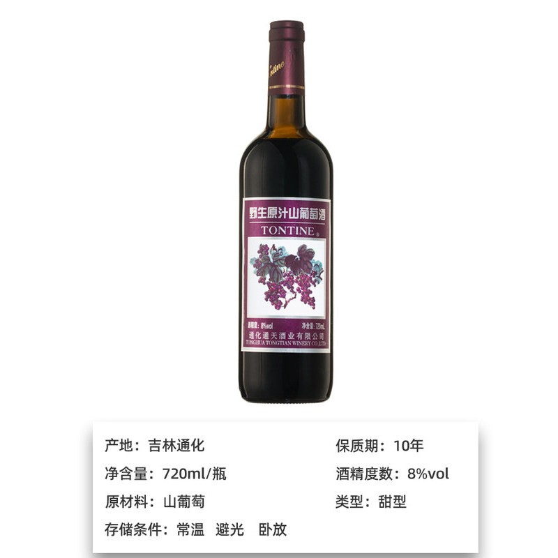 通化产 通天野生原汁山葡萄酒8度甜酒女士红酒720ml整箱厂家授权